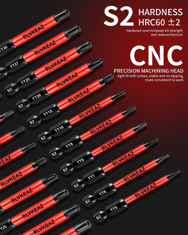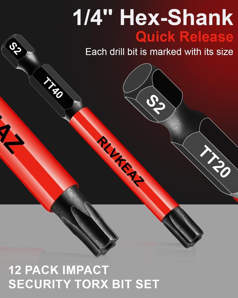 Free eBay listing template designed by dewiso.com 12-Piece Impact Security Torx Bit Set (T5-T40), 3-Inch Long S2 Steel Tamper-Proof Star Bits Set, with 1/4" Hex Shank, Magnetic & High Torque for Automotive, Electronics, DIY Repairs FREE AND FAST SHIPPING! About this item RLVKEAZ Impact Safety Torx Bit Set (12 - Packs T5 - T40), upgraded to 3 inches in length, offers broader applications and easier operation. It is a great helper for your efficient work Impact Torx Bits: This unique torsion zone absorbs torque peaks, cuts breakage risk, lasts 10x longer than standard bits, and suits impact drivers, electric drills, and screwdrivers Full - Spec Set: Contains 12 Security bits (T5, TT6, TT7, TT8, TT9, TT10, TT15, TT20, TT25, TT27, TT30, TT40), and each torx bit has its size clearly marked Exquisite Craftsmanship: This impact torx bit set is CNC - processed, with an S2 alloy steel body, a hardened core for strength, and manganese phosphate - treated for rust resistance, with 1/4" Hex - Shank Magnetic Head: It's easy to pick up screws, and this magnetism doesn't weaken after repeated use. This set of security bits is highly suitable for home DIY projects, woodworking, auto repair, etc This Professional - Grade 3 - inch - long Torx bit set is an indispensable addition to your tool kit. Thank you for choosing RLVKEAZ Product We offer a 30-Day Return Policy on items which you are not completely satisfied with. You have the option for a full-refund or an exchange of the item. No returns are available on items shipped outside of the US . Shipping We offer Free Shipping to the US and ship within 2 business days of payment, usually sooner. We use UPS express shipping. That's why your products are usually delivered within 3 days . Contact We try our very best to make sure every customer is completely satisfied. If there's a problem , message us! We're happy to help. 24/7 live chat available.