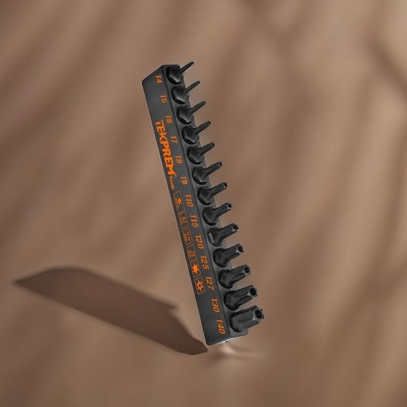 Torx bit set with magnetic driver handle [Security Torx Screwdriver Bit Set]: 13-piece torx bit set with driver handle include T4 T5 normal torx bit and TR6 TR7 TR8 TR9 TR10 TR15 TR20 TR25 TR27 TR30 TR40 security torx bits set. [Industrial Grade S2 Steel Bits]: All the torx bits are made of industrial grade S2 steel, high quality and sturdy for long time use.Precise and accurate to fit and remove your torx screws with no hassle. [Strong Magnetic Bit Driver]:This set also include a strong magnetic bit driver handle, it will not only hold short screwdriver bits tightly and firmly but also magnetic to grip the screws. MOST OF THE OTHER 1/4 inch screwdriver handle can only hold the bits but NON-MAGNETIC TO HOLD SCREWS [Widely Applications]: The T4-T40 torx bits set can be widely used for engines,automobiles,motorcycles,bicycle,Stihl chainsaws,trucks,furniture and other equipments with torx screws. [All Bits in One]: All the bits are stored in a rubber strip which are convenient for storage and pick up.