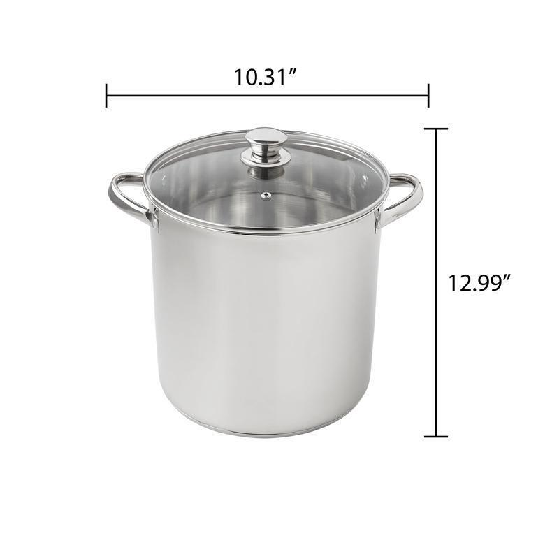 4 Corner Standing Shower Caddy Tension Pole Rust Proof Aluminum Shower Organizer 75.21 USD Free shipping Floral 12-Piece Dinnerware Set Durable Stoneware Microwave Dishwasher Safe New 93.2 USD Free shipping Self-Warming Dog Bed Plush Fur Calming Cuddler Water-Resistant Easy Clean New 77.99 USD Free shipping 50 Gallon Storage Tote Durable Stackable Shatterproof Bin W/ Snap-on Lid New 90.13 USD Free shipping Skirting Vinyl Underpinning Vented Panel Pebblestone for Partition Decoration 90.94 USD Free shipping Mobile Computer Office Desk Laptop Computer Table with Drawers and Printer Shelf 77.99 USD Free shipping Non-GMO Quail Layer Feed 26% Nutrient Dense 40lb Premium Food Laying Birds New 90.99 USD Free shipping Single Serve Espresso Coffee Maker W/ Milk Frother 4 Cup Sizes Automatic New 209.26 USD Free shipping Dig-Free Easy Up Mailbox Heavy Duty Installation No Digging Needed Secure Base 129.44 USD Free shipping Durable Stackable Storage Bins 14 Gal Versatile Use Garage Attic Crafts 162.5 USD Free shipping 10FT OFFSET PATIO UMBRELLA WITH EASY TILT HAND CRANK WIND VENT FOR GARDEN New 116.99 USD Free shipping Easy Up Mailbox Heavy Duty Dig-Free Assembly Address Numbers Rear Access New 129.44 USD Free shipping Prepare amazing sauces, soups, pastas, and more with the sizable Stainless Steel 12-Quart Stock Pot with Glass Lid. This large stock pot measures 10. 04”L x 10. 04”W x 9. 64”H and is perfect for cooking family meals for any occasion. Designed with stylish stainless steel and glass, it’s sure to coordinate with your existing cookware. This sturdy stock pot features stay-cool handles, transparent glass lid, durable stainless steel construction and is induction safe. Ideal for helping you feed your family and friends at get-togethers, backyard barbecues, celebrations, and other special events, the Stainless Steel 12-Quart Stock Pot with Glass Lid is a must-have cookware item in any kitchen. Sizable stock pot is perfect for preparing amazing sauces, soups, pastas, and more Stylishly designed to coordinate with your existing cookware Ideal for cooking for large gatherings as well as smaller groups Features stay-cool handles, transparent glass lid, and stainless steel construction Induction Safe Materials: Stainless steel, glass Dimensions: 10. 04”L x 10. 04”W x 9. 64”H Weight: 4. 04 lbs Dishwasher safe. Wash before first use. Do not boil dry. Do not use cookware on high heat or high flames; use medium or lower heat settings. Match base of pan to stove burner size. High heat, high flames, or boiling dry can cause cookware to turn black or red. Handles and knobs may warm during heating. It is recommended to use oven mitts or pot holders when handling. You may also like 8 Inch Cast Iron Skillet Preseasoned Nonstick Easy Clean Camping Cooking New 13.9 USD Free shipping Durable Non-Skid Truck Bed Coating Paint Protects Against Rust Scratches Weather 77.92 USD Free shipping Cereal Dispenser 2 Pack Countertop Storage Organizer Easy Dispense Tools New 50.36 USD Free shipping 5-Case Craft Storage Cart Organizer Top W/ Wheels Scrapbooking Supplies New 49.38 USD Free shipping Foldable Pet Grooming Table W/ Adjustable Arm Easy Storage Transport Use 83.99 USD Free shipping Replacement Canopy 10x12 Patio Gazebo UV Waterproof Fabric Easy Install New 141.69 USD Free shipping 8-inch Wood & Poly Shrub Leaf Rake Eucalyptus Handle Lawn and Garden Cleaning 12.21 USD Free shipping Heavy Duty 100ft Outdoor Extension Cord Waterproof Lighted End 12AWG 15Amp New 77.99 USD Free shipping Dog Playpen Fence Indoor Outdoor Pet Enclosure W/ Door Panels Easy Assembly New 77.99 USD Free shipping Powerful Bagless Upright Vacuum Cleaner Multi-Surface Lightweight Tools Included 82.8 USD Free shipping Organic Maple Sugar Pancake Waffle Mix Handcrafted Maple Pearls Vegan Dairy-Free 9.27 USD Free shipping Wireless Color Printer Scanner Copier Duplex WiFi Mobile App 2400dpi 5760dpi New 70.8 USD Free shipping