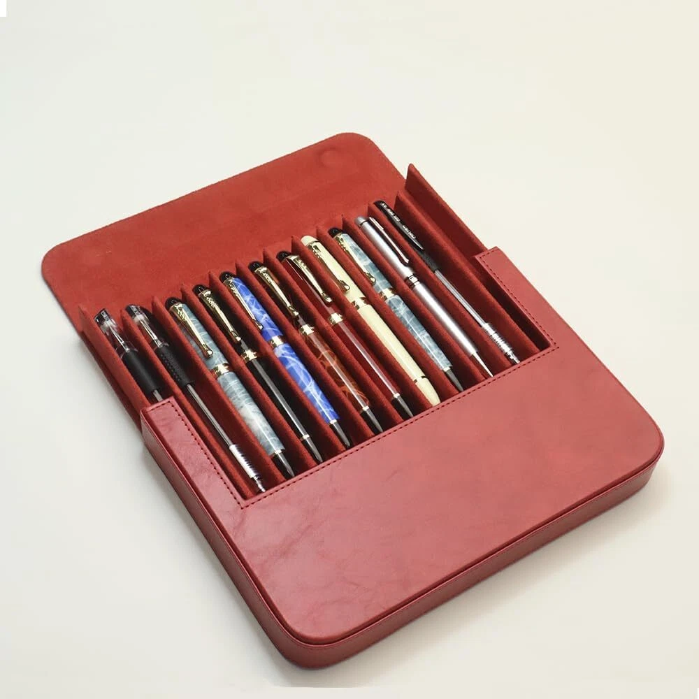 12Slots Leather Fountain Pen Case Collector Organizer - Handmade Pen Case Vin...