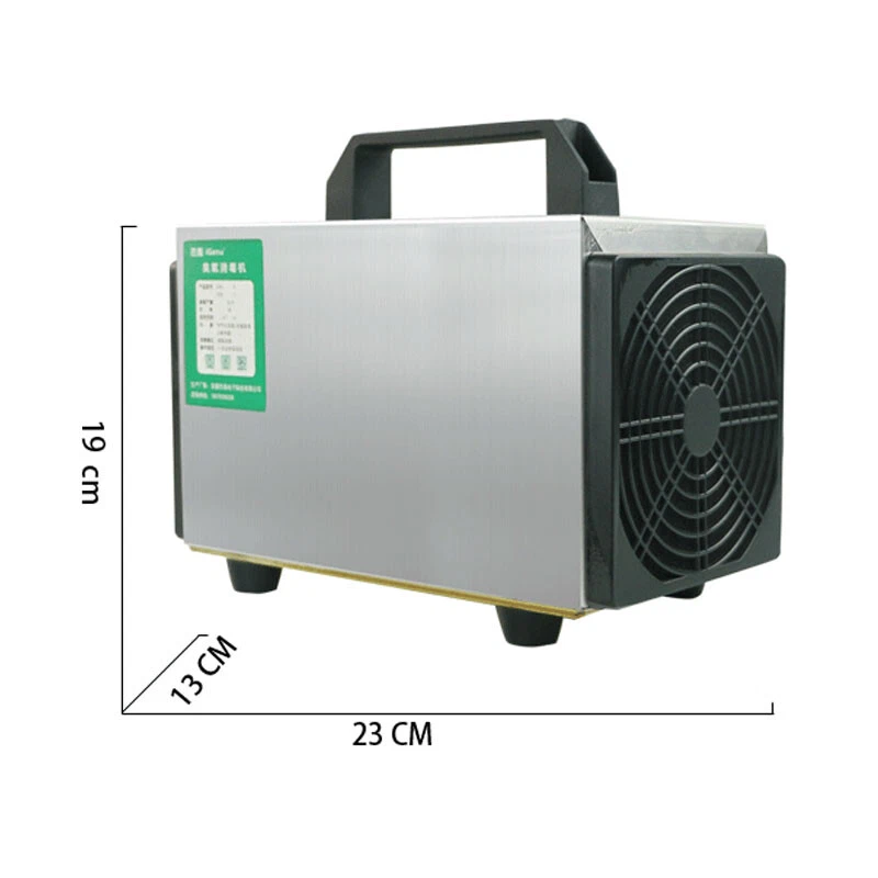 eBay Product Description Description: Ozone disinfection sterilization machine for the goods utilizing lightning discharge principle of ozone to the air as raw material, creeping discharge technology jerks release of high concentrations of ozone, ozone is one of the strongest known oxidant, at certain concentrations, can quickly kill off the water and air in a variety of harmful bacteria. It is recognized as the world's a broad spectrum of potent bactericidal disinfectant. Applications: For home, car, workshop, shed, bathroom, conference rooms, public places sterilization, air purification Parameters: Product Type:Vehicle 12V ozone generator Ozone Output: 10000mg / h Input voltage: 12V Power :80W Timing range: 0-60 minutes Weight: 3.5kg Machine size: 23 * 13 * 19cm Package size: 25 * 25 * 25cm Instructions: Plug in the power, you can use Package Included: 1 x 10g ozone generator
