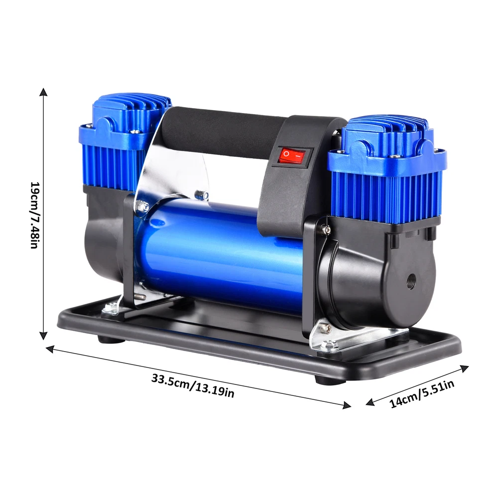 Store category Sign Up Now ! You may also like Product Description Ease of Use: Seamlessly inflate tires with our 580W air compressor; designed for 12V car voltages, it's ideal for large off-road vehicles and quickly defrosts, ensuring easy use and rapid inflation.\nHigh-Efficiency Inflation: Equipped with a 40 double-cylinder for high power, this air compressor delivers 150-200psi pressure, ensuring rapid inflation of 14-16kg with precision, thanks to its accurate pressure gauge.\nRich Accessories: Starting with a 2.5m wire for easy reach, this air compressor boasts a 7m inflation tube that folds to 3 meter, includes 3 nozzles, 2 filters, and a tool kit, ensuring a seamless experience.\n3 Types of Air Nozzles: Whether for SUVs, pickups, RVs, or off-road vehicles, this air compressor adapts seamlessly, also fitting MPVs, ATVs, and trailers, not to mention its perfect compatibility with electric bicycles and motorcycles. It's a necessary tool for inflating beds, swimming rings, and balls, enhanced by three additional nozzles for all your needs.\nDurability for Extreme Conditions: Engineered for the desert, this all-metal air pump withstands high temperatures and pressure, resists thermal expansion and contraction, and keeps unfazed by the cold—ideal for frequent off-road adventures.\n\nLook no further than our 12V compressor! With the ability to inflate 14-16kg, it comes with rich accessories and is perfect for use with inflatable beds, swimming rings, and balls. Plus, its cold resistance means you can use it in any weather.\n\n Specification: Product name: air compressor Material: metal, copper winding Color: blue Voltage: 12V Power: 580W Air pressure: 150-200psi Model: 40 double cylinder Features: metal air pump, high temperature and low temperature resistance Applicable scenarios: Our car air compressor is especially suitable for SUV, pickup truck, RV, 4x4 off-road vehicle, MPV, ATV, campers, trailer, motorcycle. Equipped with 3 additional air nozzles, it can also be used for inflatable beds, swimming rings and balls, bicycles, electric bicycles, motorcycles, etc. Atmosphere time: 1-3 minutes Product size: about 33.5x14x19cm/13.19x5.51x7.48 inches Packaging size: about 38x27x26cm/14.96x10.63x10.24 inches Product Weight: about 7kg\nPacking List: 1xHeavy duty compressor 1x7m air hose 1x2.5m electric wire 1xInstruction manual 1xTool kit 3xAir nozzles 2xFilters Note: 1. Due to the different display and lighting effects, the actual color of the product may be slightly different from the color shown in the picture. Thanks! 2. Due to manual measurement, a measurement deviation of 1-3cm is allowed. Payment Delivery details Terms of sales About us Feedback & DSRs Payment Before you palce an order, please kindly make sure that you have a paypal account. We accept PAYPAL payment only. Payment should be completed within 2 days after auction closed, or unpaid dispute will be filed for an closing auction. An unpaid case will be filled after 4 days. Delivery details We ship to your eBay address. Each package will be shipped to US by UPS Regular Parcel with tracking number. Please check your shipping address carefully before checkout, it can't be changed if order completed. All items will be shipped within 1-2 business day upon receipt of payment.Orders placed on weekend will be shipped within 3 days. If you do not receive your item in 7-10 business days.please contact us immediately for further assistance. We will be responsible for any damages or losses incurred in the shipping process. About us We maintain high standards of excellence FIVE STAR and strive for 100% customer satisfaction! Positive Feedback is very important to us. We hope that you contact us immediately Before you give us neutral or negative feedback, so that we can satisfactorily address your concerns. We promise to offer the lowest price and high quality produce. Our working time: From Monday to Friday(9:30 am to 18:00pm), we don't working on holidays ,hope you can understand and know that , thank you. Please always talk to us via ebay Message. We appreciate your business and look forward to growing our e-Bay sales with satisfied customers. Feedback Contact us If you have any questions, please feel free to contact with us by ebay Message during our business hours ( 9:30a.m. to 5:30 p.m.), or email us through eBay, we will try our best to help you to resolve it. For any presale or after-sale questions,please do feel free to email us! Due to the time difference, each email will be replied within 1 working day,and weekend will be delayed a bit. Feedback