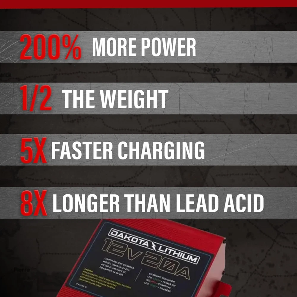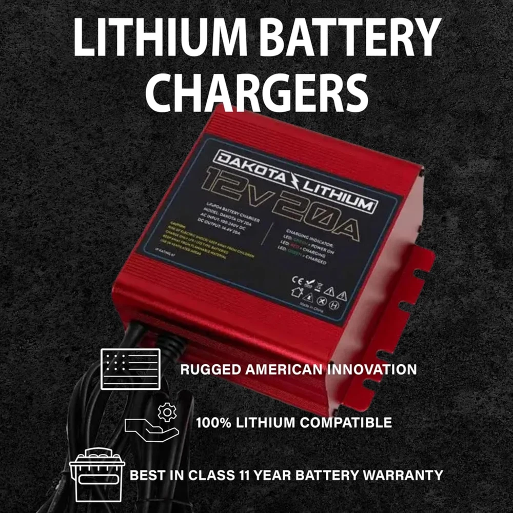 Store New Arrivals Add to Favorite View Feedback Contact - 12V 20 Amp Waterproof Charger for Lithium Deep Cycle Battery - Compatible Lifepo4 Charger - 1 Charger Description Color Red, Black Product Dimensions 1.97"D x 1.18"W x 0.79"H Item Weight 2.53 pounds Input Voltage 12 Volts Output Voltage 14.4 Volts MADE FOR LifePO4: Dakota Lithium has optimized this charger for use with our lithium iron phosphate batteries (LiFePO4). IMPROVED PERFORMANCE - Dakota Lithium batteries should be charged using a LiFePO4 compatible charger like this one. SLA chargers may reduce the performance and lifespan of the battery. FAST CHARGING - Built in a high tensile aluminum case for rapid cooling, this charger is rated at 20 amps and will charge a Dakota Lithium 54 Ah battery in 2.5 hours or a 100 Ah battery in <5 hours. BMS COMMUNICATION – This Charger will restart or "wake up a BMS system that has turned off a battery due to short circuit or excessive amp draw. UNIVERSIAL FIT: The charger is equipped with Anderson SB 50 connections for ease of use and versatility. Product Description USA Based Troubleshooting and Sales Dakota Lithium Power: Dakota Lithium’s batteries were born in the rugged landscape of North Dakota and are backed by a “Best in Class” 11 Year Commitment! 12V20Ah Waterproof LifePO4 Battery Charger We're In Business to Help People & Our Planet Here at Dakota Lithium, we create energy products to help people with deep cycle battery applications and long-lasting energy storage. We’re here to power your passions. We believe that quality makes a difference, and that quality is measured by lifespan – how long a battery lasts. Dakota Lithium lasts 4x longer than traditional batteries, providing lasting value for our customers, and reducing waste and the impact on our planet. Committed To Excellence: All Dakota Lithium Batteries are backed for 11 years. Built To Last: Dakota Lithium batteries last so long that the cost per use is a fraction of traditional batteries. Built Smarter: All Dakota Lithium Batteries include Battery Management System (BMS) technology that controls cell balancing, low and high voltage cutoff, and short circuiting. Lightweight Dakota Lithium batteries stand out for their remarkable lightweight construction, thanks to advanced lithium iron phosphate technology. These compact powerhouses reduce the burden of carrying heavy batteries, making them the ideal choice for outdoor enthusiasts seeking efficient, lightweight energy solutions. Clean Earth Impact Our batteries have NO Cobalt or Rare Earth elements. Being built with Non-Toxic materials, each battery has exceeding long life over 2000 cycles. Smart Electronics -BMS Each battery is equipped with our BMS (Battery Management System) technology. Giving you confidence with Cell Balancing, Low/High Voltage Cutoff, Short Circuit Protection and High Temperature Protection. More Charges To optimize your battery life we recommend using our Dakota Lithium charger. This gives you ease of mind knowing your battery and charger will work perfectly together. If you already have a charger, please make sure it has Lithium settings as using SLA/AGM charger can harm the battery and longevity. ABOUT US We offer the best prices around on high quality products. Our E-store includes media such as books, movies, music and games while offering electronics, toys, sporting apparel, clothing, tools, general home, garden items and more. SHIPPING We are always working hard to ensure your package arrives as soon as possible. Please understand that some factors like weather, high postal traffic, and the performance of shipping companies are outside of our control. We offer free shipping to the lower 48 states and ship within 2 business days of payment, usually sooner. We do not accept P.O. Boxes. Please provide a physical address. For shipping outside of the continental USA, we only use eBay's Global Shipping Program.The item is shipped to KY and then sent to the rest of the world. International customers are responsible for all duties and taxes. Continue to check out in order to calculate costs for shipping the item to your country. Messages regarding eBay's Global Shipping Program MUST be directed at eBay EXCLUSIVELY. RETURNS We offer a 30-Day Return Policy on items which you are not completely satisfied with. You have the option for a full-refund or an exchange of the item. No returns are available on items shipped outside of the USA. PAYMENT We accept PayPal. CONTACT US This page content is yet to come Please ad us to your favorite seller and visit again later Thank You CUSTOMER SATISFACTION We try our very best to make sure every customer is completely satisfied. If there's a problem, message us! We're happy to help. WE ACCEPT Copyright © 2021 AutoDS. | All Rights Reserved