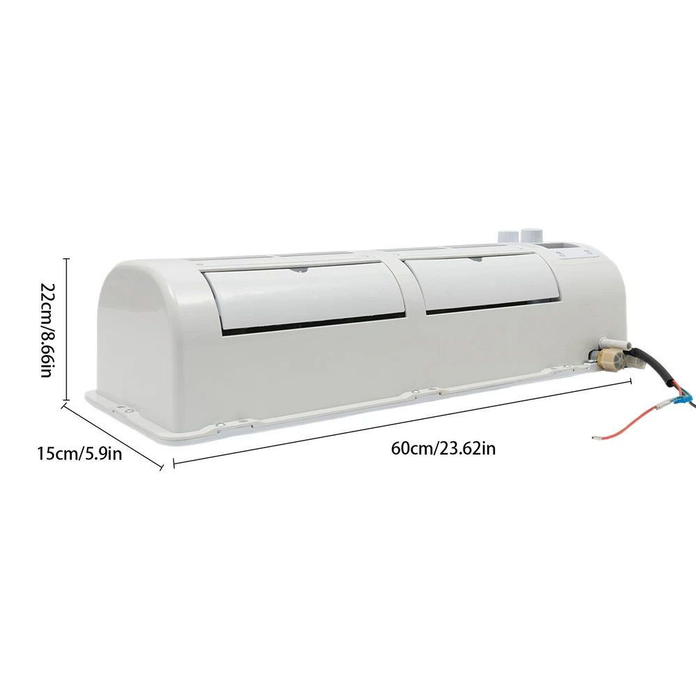 Product Details: Material: ABS, copper Voltage: 12V Use function: single cold type Installation form: wall-mounted Power: 200w Refrigerant: R134a Circulating air volume: 458m3/H Cooling capacity: 22525 BTU / H Temperature control: liquid crystal display, manual three-speed adjustment Weight: 7.5kg Size: 60 * 15* 22cm The package includes (only the following products are included): 1X car evaporator 1X mounting kit 12V 200W Car Hanging Portable Air Conditioner A/C Car Truck Loading Wall-mounted Description Are you still worried about driving in the hot summer without an air conditioner? Our vehicle air conditioner will solve this problem well and provide you with a comfortable interior environment. Our air conditioner can adjust the wind speed and temperature according to your needs. The individual indoor unit facilitates the installation of different vehicle models. Such a good helper is a necessary tool in hot summer. Key Features Durable & Sturdy: The ABS shell with spray paint and the heat exchanger with 24 parallel copper tubes offer wear resistance , and longer stable performance. High Working Efficiency: It boasts a robust power of 100W, a cooling capacity of 22525 BTU/h, a wind coverage area of 4929.87ft²/h, a motor's rotating speed of 3000rpm, and 2 air outlets (manually adjustable wind direction), providing a strong, cool breeze and creating a more comfortable interior for you. Adjustable Wind Speed & Temperature: The three gears' wind speeds and the different temperatures can be set by rotating the two knobs on the top of the screen, giving a customized experience. Safe to Use: Overload protection, short circuit protection, and under voltage protection provide long-term safe performance. Meanwhile, the air conditioner will automatically stop and emit an alarm when the refrigeration system is abnormal . Low Noise: The noise emitted by the air conditioner with a pu re copper motor during op eration is only about 65 decibels, which does not easily affect you or others. Compact Design: It measures 25.39*9.65*6.1 inches with a lower space requirement, being easily installed in your vehicle without taking up much space. Easy to Clean: Thanks to its smooth surface and simple construction, you can wipe the stains from its surface with a single rag. Guaranteed Customer Service: Your satisfaction is our primary goal. If you have any questions about this split vehicle air conditioner, please feel free to contact us, we will reply and provid e the solution to you as soon as possible. Details LCD Screen: The clear and crisp temperature on the screen allows you to have a better grasp of its working status and make timely adjustments. Filter Mesh: It can effectively prevent dust particles in the air from entering the internal components of the air conditioner, facilitating cleaning. Application It can be applied to heavy trucks, light trucks, forklifts, cranes, RVs, refrigerated trucks, bulldozers, harvesters, and other occasions. Specifications Color: White Material: ABS, Copper, Pure Copper Surface Treatment: Spray Paint Voltage: 12V Power: 100W Energy Efficiency Ratio: ≥3:1 Refrigerant Model: R134A (Filling Capacity: 900g, Based on the Outdoor Unit System) Cooling Capacity: 22525 BTU/h Wind Coverage: 458m²/h/4929.87ft²/h Motor's Rotating Speed: 3000rpm Noise: 65dB Wind Speed: 3 Gears Adjustable Temperature: 16-30℃/60.8-86℉ Gross Weight: 8.8kg/19.4lbs Net Weight: 7.8kg/17.2lbs Product Size: 64.5*24.5*15.5cm/25.39*9.65*6.1inch Package Size: 70*23*34cm/27.56*9.06*13.39inch Package Included 1*Air Conditioner Indoor Unit All Accessories for Assembly Notes Please note that it it needs to be used in conjunction with equipment such as compressors, condensers, desiccant bottles, relays, etc. The specific circumstances must also align with its actual application; Otherwise,it only has a fan function. Professional installation is highly recommended. Please allow the slight color difference caused by the shooting light and 1-3cm error due to manual measurement, and make sure you do not mind before you order. Payment Delivery details Terms of sales About us Contact us Payment We accept ebay payment 。 Fees such as import duties, taxes are not included in the item price or shipping costs. These charges are the buyer's responsibility. Delivery details Shipping: 2-9 working days to: USA Terms of sales We maintain high standards of excellence and strive for hundred percent customer satisfaction. Feedback is very important to us. We hope that you contact us immediately before you give neutral or negative feedback, so that we can address your concerns. It is impossible to address issues if we do not know about them! About us Your satis faction is our ultimate goal. We work hard to earn your trust and future business. Our certified technicians have tested each item before shipping. The unit comes with 1 year limited warranty on all manufacturing defects. a) If you receive a defective item, you may return it or ask for a discount. Please contact us within 14 days after you receive the package. b) What you returned must be intact and in its original packaging as re? u. Customer is responsible for shipping costs of the returned item. c) We will cover the cost of shipping back t with the shipping rate indicated in the registration page. We will send you a new unit or refund the full payment you paid. Thank you. Contact us Business Hour Business Hour: Monday To Friday: 8:30 AM to 5:00 PM (Beijing China time) Due to time zones, our reply to your questions may not be immediately. But within above working time, we will reply your email within 24 hours. If it's non-workdays, please kindly be patient and wait till Monday. Please contact us with ebay message. Please feel free to contact us if you have any questions. Monday To Friday: 8:30 AM to 5:00 PM (Beijing China time) Due to time zones, our reply to your questions may not be immediately. But within above working time, we will reply your email within 24 ho