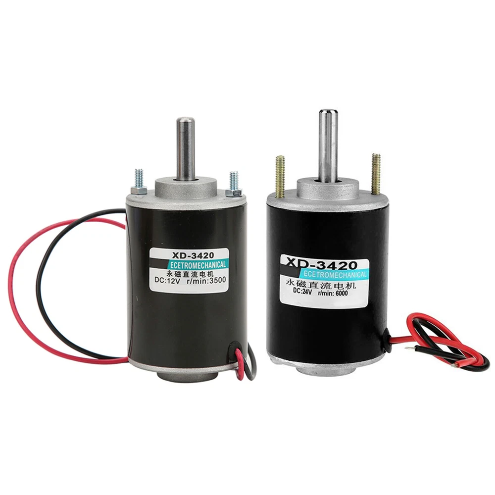 Feature: 1. Ball bearing, small friction, strong oil seal, high bearing capacity. 2. It drives super smooth, almost no noise, safe to use. 3. With high speed 3500/7000rpm for your choice and large torsion. 4. The stator windings of the motor are copper wire, low heat, low loss, long life,and with CW/CCW control 5. Need for external direct current governor, it can achieve speed adjustment function Specification: Descriptions: This DC electric motor drives super smooth, almost no noise, safe to use.With high speed 3500/7000rpm for your choice and large torsion. Widely used in cotton candy machine, small cutting bench, grinding machine and other mechanical equipment. Features: It drives super smooth, almost no noise, safe to use. With high speed 3500/7000rpm for your choice and large torsion. The stator windings of the motor are copper wire, low heat, low loss, long life, and it can realize CW/CCW by switch control (switch not included) . Need for external direct current governor, it can achieve speed adjustment function. Widely used in cotton candy machine, small cutting bench, grinding machine and other mechanical equipment. Ball bearing, small friction, strong oil seal, high bearing capacity Specifications: Product type: brush DC motor Model: XD-3420 Rated power: 30W Rated voltage: 24V Rated speed: 3500RPM(12V), 7000 RPM(24V) (Optional) Current: 0.5 A Output Shaft Length: Approx. 26mm/1.02inch Torsion:1kgf.cm(12V), 2kgf.cm(24v) Weight:460g Package Included: 1 x DC Electric Motor Note: Please note that the new type and old type of this product will be sent randomly, and make sure you will not mind before ordering.