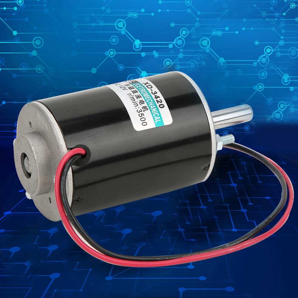 Feature: 1. Ball bearing, small friction, strong oil seal, high bearing capacity. 2. It drives super smooth, almost no noise, safe to use. 3. With high speed 3500/7000rpm for your choice and large torsion. 4. The stator windings of the motor are copper wire, low heat, low loss, long life,and with CW/CCW control 5. Need for external direct current governor, it can achieve speed adjustment function Specification: Descriptions: This DC electric motor drives super smooth, almost no noise, safe to use.With high speed 3500/7000rpm for your choice and large torsion. Widely used in cotton candy machine, small cutting bench, grinding machine and other mechanical equipment. Features: It drives super smooth, almost no noise, safe to use. With high speed 3500/7000rpm for your choice and large torsion. The stator windings of the motor are copper wire, low heat, low loss, long life, and it can realize CW/CCW by switch control (switch not included) . Need for external direct current governor, it can achieve speed adjustment function. Widely used in cotton candy machine, small cutting bench, grinding machine and other mechanical equipment. Ball bearing, small friction, strong oil seal, high bearing capacity Specifications: Product type: brush DC motor Model: XD-3420 Rated power: 30W Rated voltage: 24V Rated speed: 3500RPM(12V), 7000 RPM(24V) (Optional) Current: 0.5 A Output Shaft Length: Approx. 26mm/1.02inch Torsion:1kgf.cm(12V), 2kgf.cm(24v) Weight:460g Package Included: 1 x DC Electric Motor Note: Please note that the new type and old type of this product will be sent randomly, and make sure you will not mind before ordering.