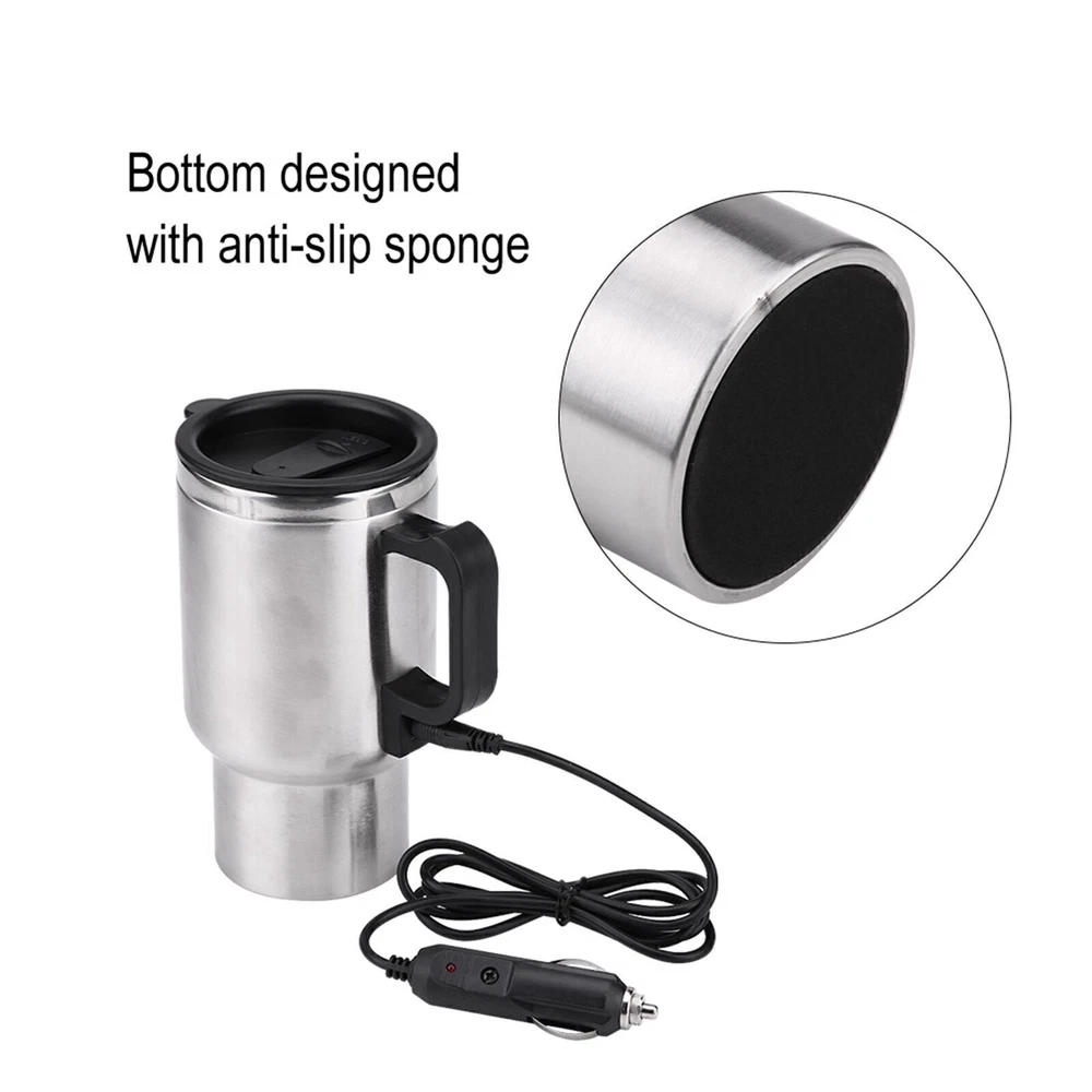 12V 450ml Electric Incar Stainless Steel Travel Heating Cup Coffee Tea Car