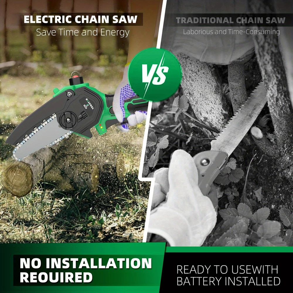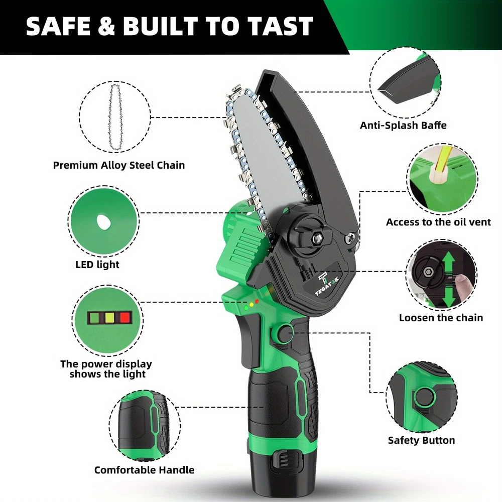 [12V Drill Set & Mini Saw], 3/8" Chuck, 24 N.M Torque, 4" Chainsaw, 2 Batteries