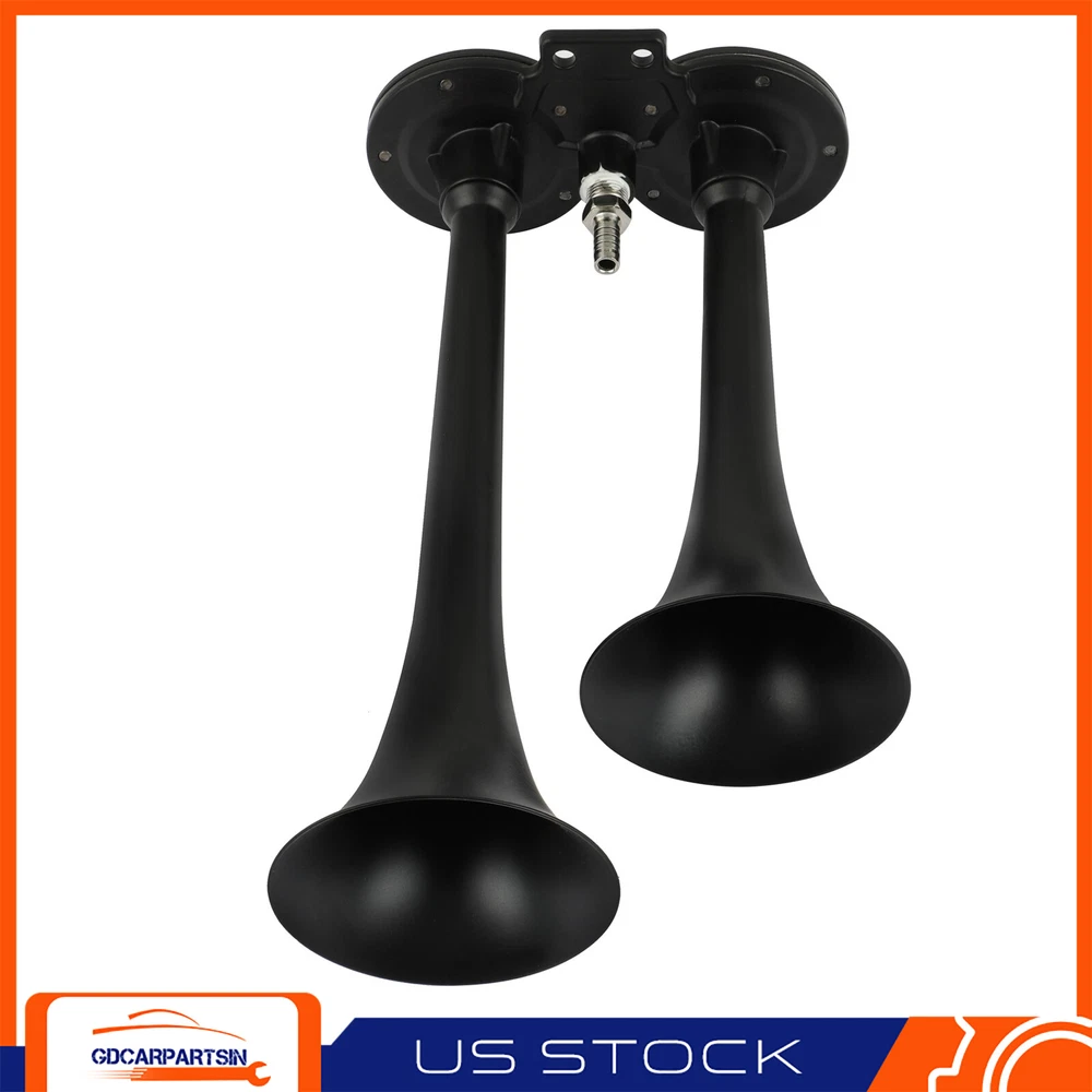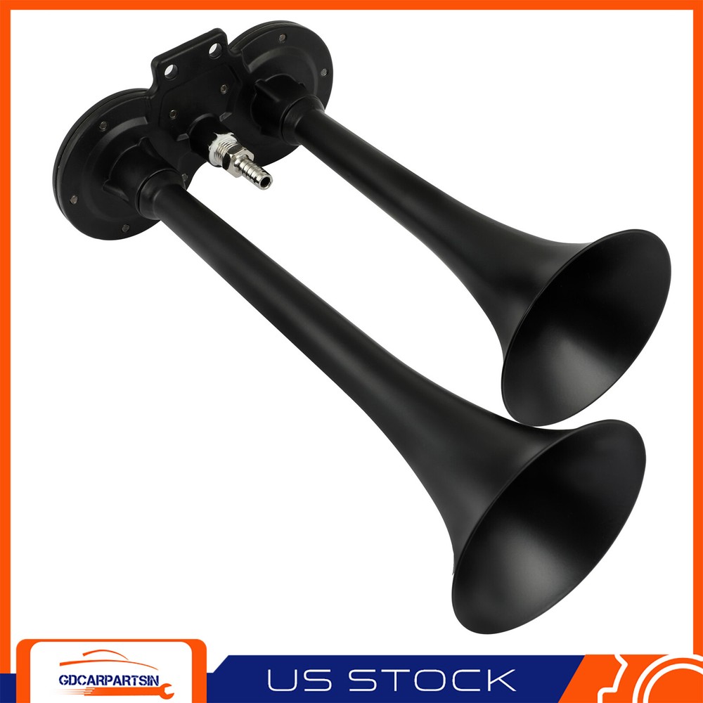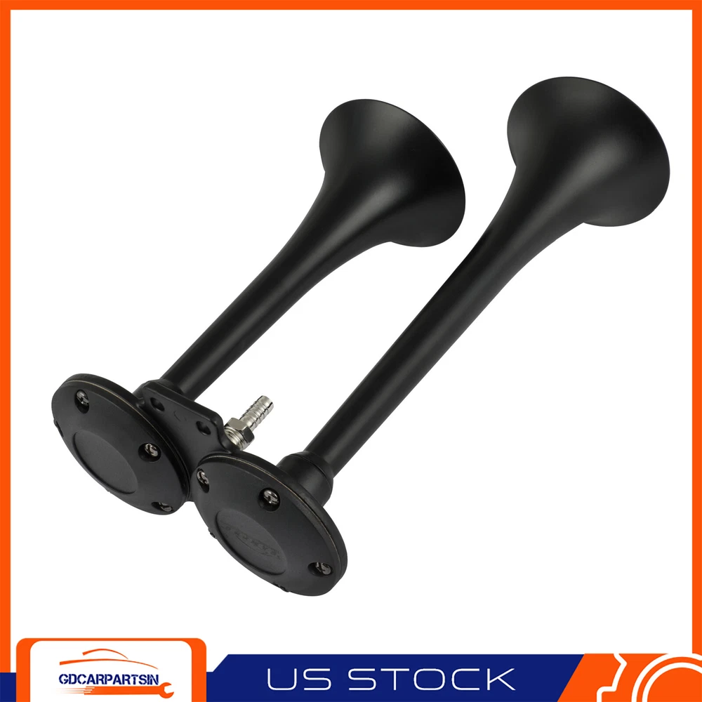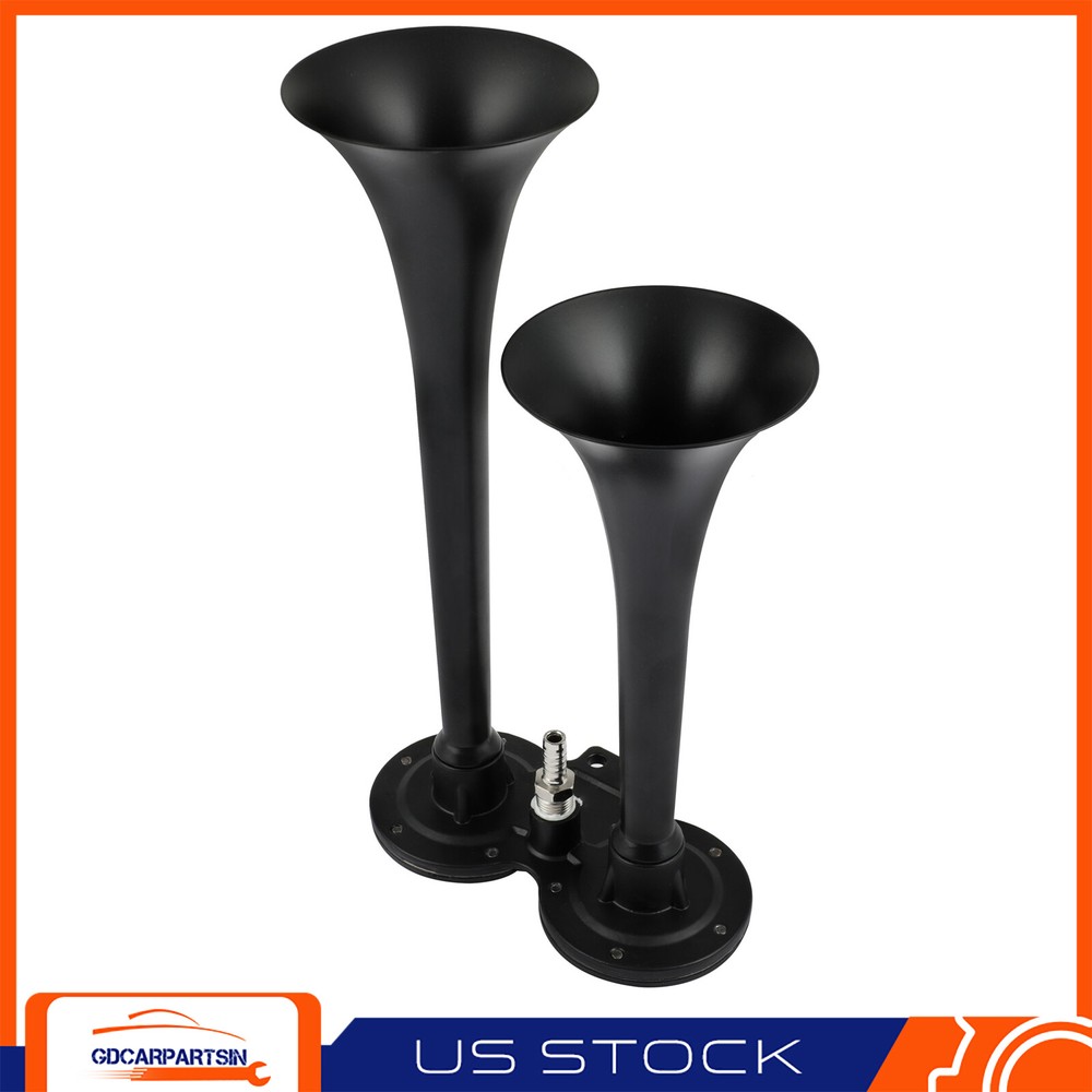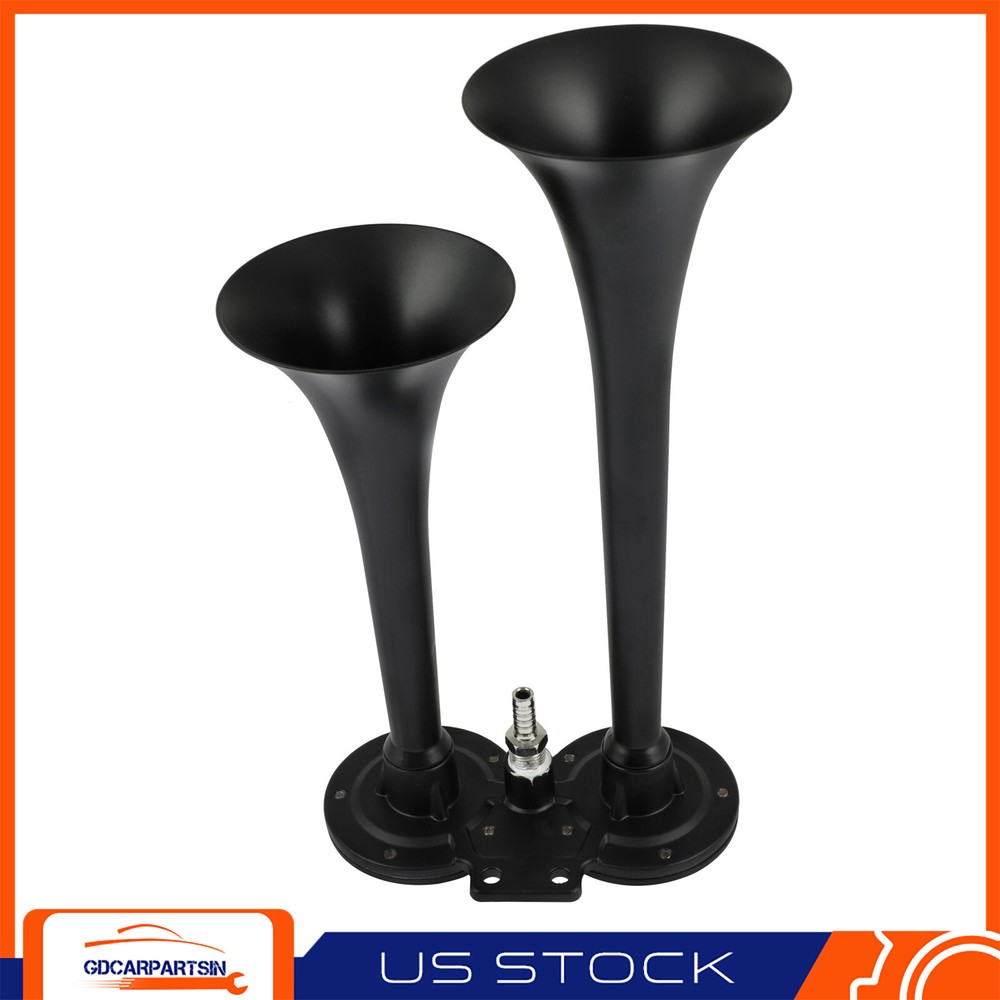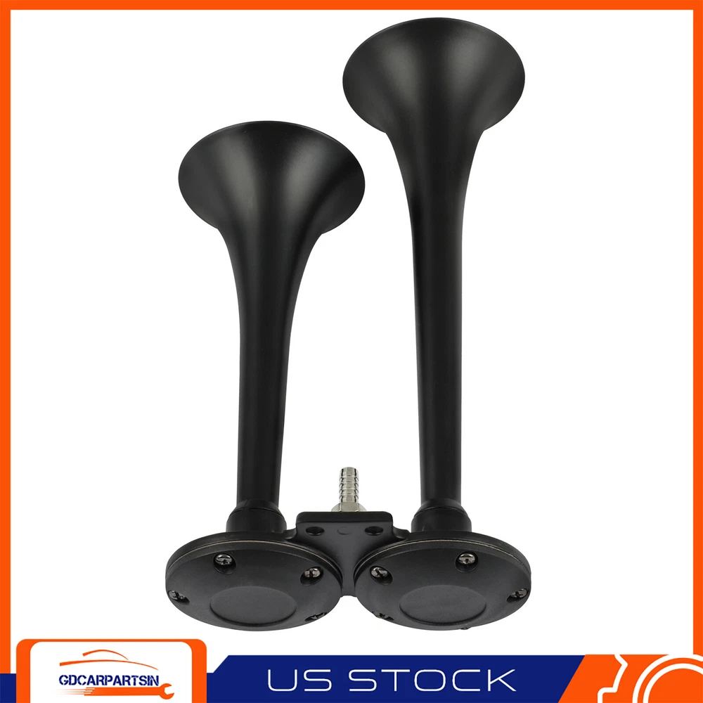 Horn Kit Installation: HORN: Identify a suitable area for mounting, preferably an unobstructed sheet-metal surface like the frame or body of the vehicle so as to provide a firm platform which will help protect the horn from damage due to excessive shaking. Do not attach the horn to any plastic or other flexible material. Using the bracket as a guide estimate and mark the positions for the holes and then perforate to size using a drill. Use the provided mounting hardware to fasten the horn.? AIR LINE: 12V Loud Black Dual Trumpet Train Air Horn System Kit RV Train Semi Van Truck Horn Kit Installation: HORN: Identify a suitable area for mounting, preferably an unobstructed sheet-metal surface like the frame or body of the vehicle so as to provide a firm platform which will help protect the horn from damage due to excessive shaking. Do not attach the horn to any plastic or other flexible material. Using the bracket as a guide estimate and mark the positions for the holes and then perforate to size using a drill. Use the provided mounting hardware to fasten the horn. ? AIR LINE: Connect one side of the airline to the compressor’s air exhaust port and the other side to the trumpet's barbed fitting. Do not make any sharp bends or kinks in the tubing which could alter the sound of the horn or even restrict airflow. IMPORTANT: Airlines are sometimes already pre-installed. In such situation, ensure that they are inserted entirely into the fittings on the trumpet and compressor. COMPRESSOR: The ideal location for the compressor to be installed is a dry area inside your engine compartment where it will be safe from exhaust and engine manifold heat. To make the compressor firm and secure, drill a hole of 3/16". IMPORTANT: The compressor must be mounted vertically (with air exhaust port facing downward). Install the bolt’s head into the compressor housing’s slot. Tighten the compressor firmly to the vehicle with the provided lock washer and nut. ELECTRICAL CONNECTIONS (FACTORY HORN SWITCH): For vehicles with a two-terminal factory horn, transfer the wires to the compressor’s terminals. If the horn doesn’t sound even if the compressor motor turns on, simply reverse the wires. For vehicles with one-terminal factory horns, make sure you transfer the wire to the compressor’s positive (+) terminal. The negative (-) terminal uses a 16-gauge wire or heavier to connect to ground. ELECTRICAL CONNECTIONS (NEW HORN BUTTON): In a dry location, install the relay provided making sure that terminals face downwards near the horn. Using a 16-gauge wire or heavier, connect PIN 87 of the relay to the positive (+) terminal of the compressor. Connect PIN 85 of the relay to the horn button (not provided). The other horn button terminal is attached to any rust and paint free metal to ground. Connect using an 18-gauge wire or heavier. Connect PIN 30 and 86 of the relay to the battery, alternator or other positive (+) of 12-volts. Make sure the wire used is a 16-gauge wire or heavier. Use a 20A fuse (not provided) to protect the electrical circuit. ? SAFETY INSTRUCTIONS: Make sure you never attempt to disassemble this horn kit’s electrical components. Never use your bare hands to any part of the compressor immediately after or during use. Avoid operating this product in an area with risk of falling or submergence into a liquid (water). Do not reach out for or touch any component that has fallen or been submerged into water. Make sure you set up in areas with good ventilation. Never sound the air horn anywhere near your ear(s) or that of another person. Make sure your battery ground is detached before getting your installation started. Employ equipment for eye protection during drilling operations. The specific voltage requirement for this horn kit is 12 volt DC, therefore installation must be done to a DC power source of 12 volts. Item Specification: The Horn is the perfect addition to 12V vehicles( Boat Train Car Semi Truck Motorcycle ) Type: Dual Trumpet Car Horn Sistem Kit (with 12V Heavy Duty Air Compressor) Volt:DC 12V Current:18.0A Sound Level:150dB Color:Black Operation Air:15-22 PSI(0.1Mpa-0.15Mpa) Material:Metal Base Construction Trumpet Size:11-½", 9" L x 3-½" Dia(230/295×90(dia)mm) Compressor Size Package Included: Dual Trumpet Air Horn 12V Heavy Duty Air Compressor 4-PIN 12V/30A Relay 3/8″ OD Air Hose Mounting Hardware Item Specifics Brand gdcarpartsin Manufacturer Part Number GD167292C01 Material Metal Handling time 1 Bussiness day Placement on Vehicle Front, Back, Left, Right Warranty 1 Year Type Installation Kit Fitment Type Direct Replacement Custom Bundle No Color Black Horn Type High Pressure Air Manufacturer Warranty 1 Year Features Quick Release Modified Item No Single Part or Kit Kit Interchange Part Number Air Horn Other Part Number Boat Train Semi Van Truck RV Interchange Part Number Air Horn Other Part Number Boat Train Semi Van Truck RV Feature ESCP Shipping 1. Orders processed within 24 hours of payment verification.(if you want cancel orders or change address pls contact us within 6 hours after payment, or we are not responsible for shipping a replacement.) 2. Fast shipping: All our packages use USPS First Class/UPS/Fedex... Package Service 3. If you have not received your shipment within 15 days from payment, please contact! Return 1. You have 30 days to contact us and 10 days to return it from the date it was received. If this item is in your possession more than 7 days, it is considered used and we will not issue you a refund or replacement. There are NO EXCEPTIONS! 2. All returned items must be in the original packaging and you must provide us with the shipping tracking number, specific reason for the return, and item custom lable. 3. We will refund your full winning bid amount, upon receipt of the item in its original condition and packaging with all components and accessories included, AFTER both Buyer and Seller cancel the transaction from eBay. OR, you may choose to have a