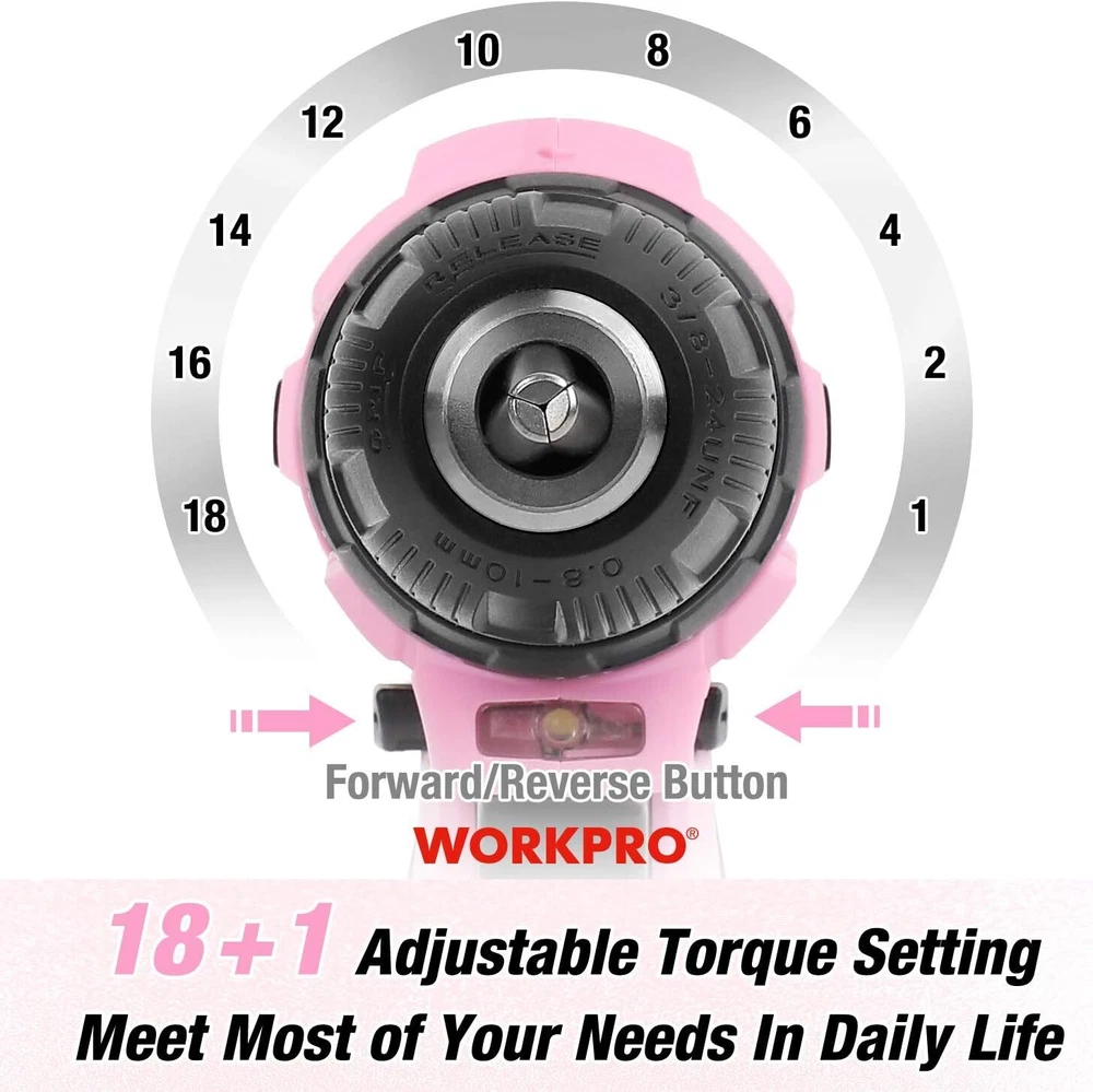 Product Description 12V Pink Cordless Drill Driver and Home Tool Kit, Hand Tool Set for DIY, Home Maintenance, 14-inch Storage Bag Included - Pink Ribbon Pink Ribbon: From January 1, 2024 to December 31, 2024, your purchase of this product will result in a minimum donation of $15,000 to be donated to Helping Women Now. High Performance - This 12V pink cordless drill has a 1.5Ah Lithium-ion battery. The battery is simple to change and charge. The power drill is designed with variable 2-speed settings (0-400 rpm and 0-1500 rpm) for multiple purposes. 18+1 Adjustment Torque - cordless drill delivers 177 in-lbs (20 N.m) of max torque, featuring an 18+1 torque position clutch, which provides more precision of torque adjustment as needed. A large 3/8"(10mm) keyless chuck can give you superior bit retention. Highly Reliable and Safe to Use - All tools meet or exceed the ANSI (American National Standards Institute) specifications for added safety. No need to worry about your tools getting damaged or breaking while in use. Notice: please make sure the drill driver is fully charged before the first use. It is recommended to wear work gloves when using tools. Portable Pink Storage Bag - Both the pink drill and hand tool set can be neatly and tidily organized into this lightweight storage bag. This portable bag is easy to carry, allowing you to take your tools with you to work, around the house or outdoors. About Us We are a reputable seller with many years of experience selling on eBay. Our goal is to provide high-quality products and excellent customer service. Shipping Items will be shipped within 1-3 business days when we received payment. (Orders are not processed on weekends & holidays) Tracking information will be sent once item is shipped. Delivery time depends on destination and other factors Item is shipped to ebay address. Leaving correct address can minimize delay. For international shipping and shipping to Guam, Hawaii and Alaska, Please contact us before placing the order. International buyers please note: Import duties, taxes and charges are not included in the item price or shipping charges. These charges are buyer’s responsibility. We will try our best to reduce the risk of the custom duties. Local pick-up is unavailable at the moment. Contact Us We reply any email messages within 1 business / working days(off-duty at weekend). If you do not get a response from us, then please check your junk or spam mailbox. Our Business hours: Mon-Fri 9:00-18:00, UTC/GMT +8 hours. Please contact us either by clicking "contact seller" in the "purchase history" section or simply click "ask a question" at the bottom of this page. If you are unsatisfied with our item or service, please contact us before leaving any feedback. We are committed to resolve all issues in a friendly and satisfactory manner.