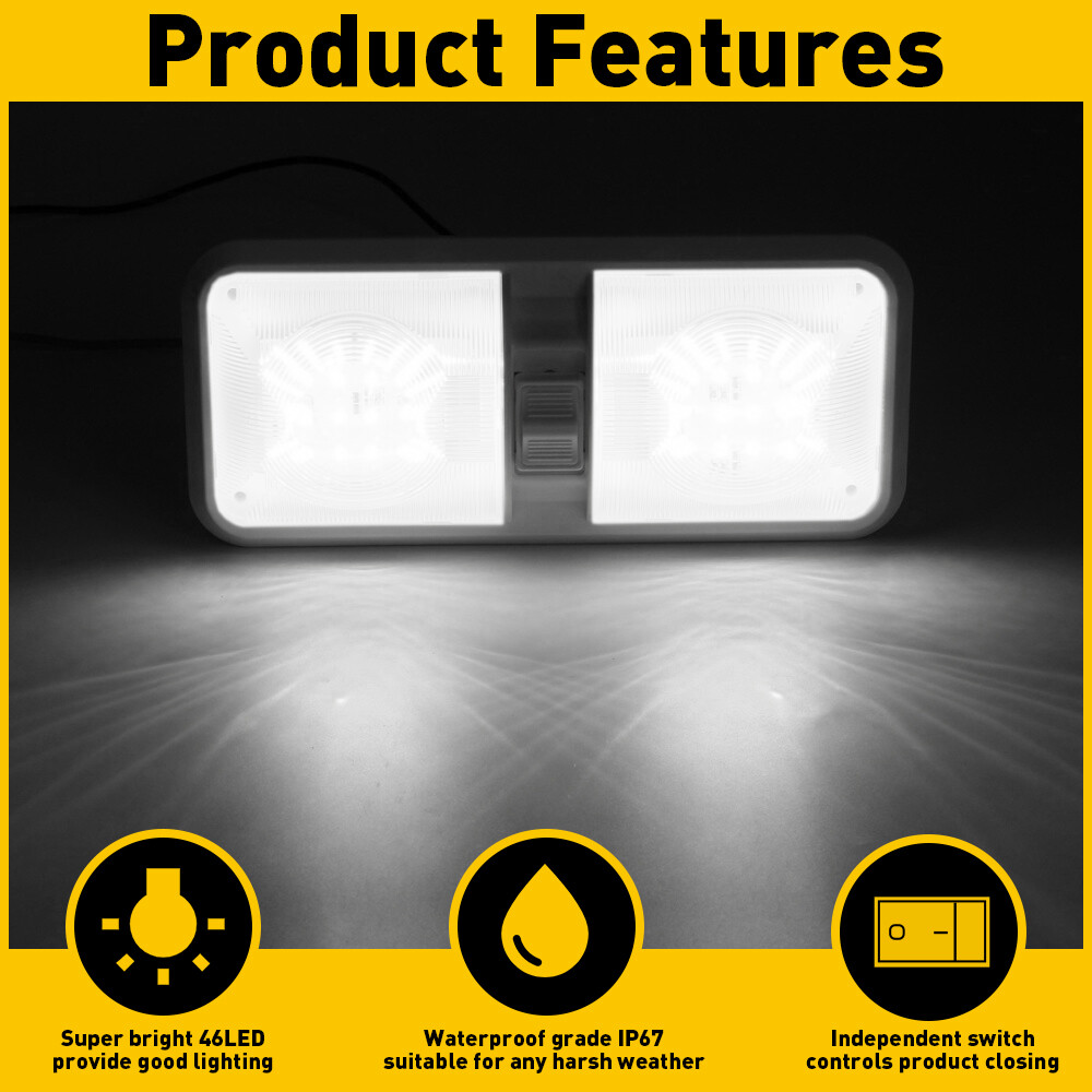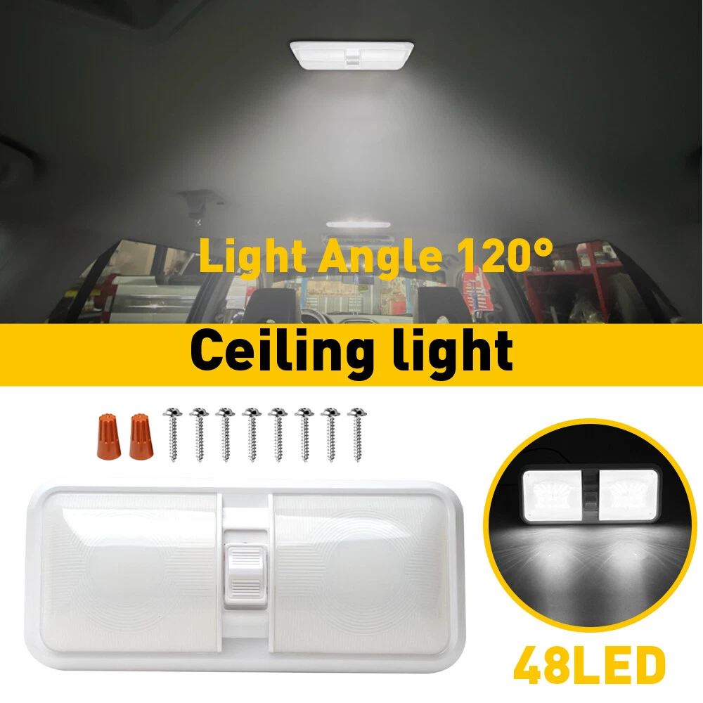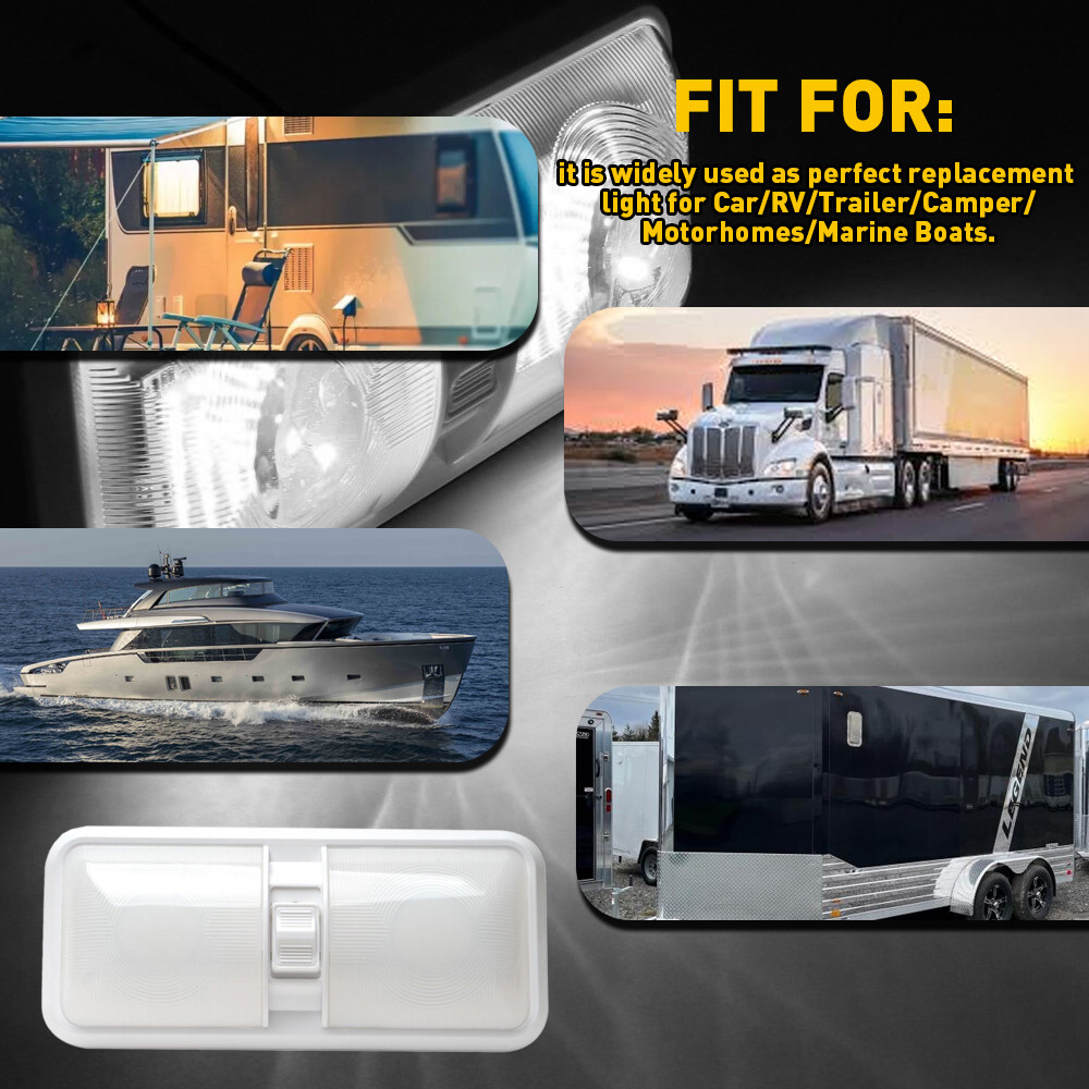 LED QTY: 48LEDs Bundle Description: Camper Trailer RV Marine Unit: 1PC gtin13: Does not apply UPC: Does not apply OE Reference Number: roof interior dome reading ceiling Cabin Strip Light Part Type: Accessories Interchange Part Number: Trailer Truck Lorry Boat Lorry Caravan Motorhome RV voltage: 12-24V Warranty: 2 Year Custom Bundle: Yes Color: White MPN: Does Not Apply Material: PVC Led Country/Region of Manufacture: United States Manufacturer Part Number: Frosted DOUBLE DOME Power: 10W Brand: Unbranded Weight: 300g Modification Description: RV 12v Interior light w/switch