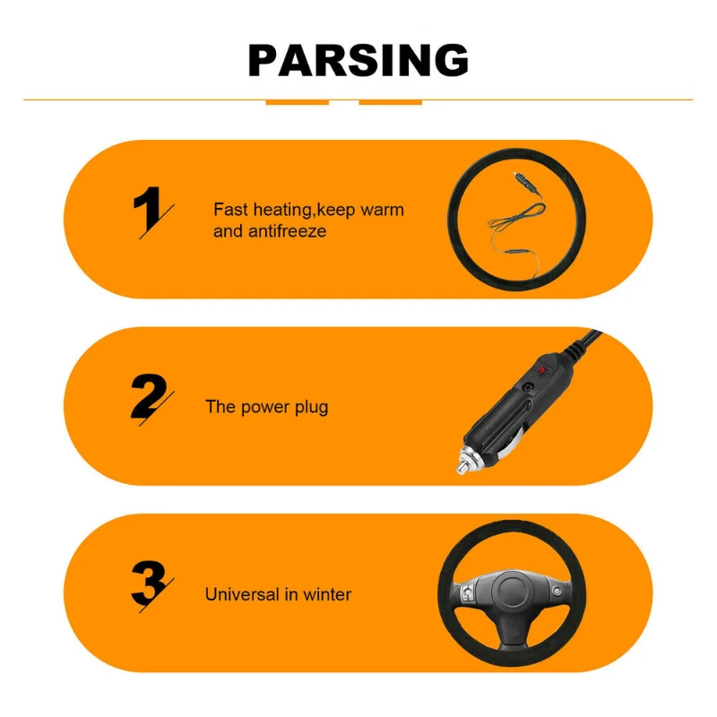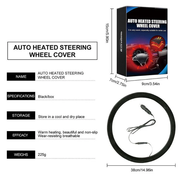 Description: WARM WINTER DRIVE-- upgraded heated steering wheel cover provides a comfortable warm ride during freezing winter. Line the heated auto steering wheel cover to the cigar lighter before you drive, It takes1-3 minutes quickly warm-up, you can feel it warmer and warmer. Use this heated wheel cover protector in your vehicle to enjoy a more relaxing drive during the frigid winter weathers. SECURED CIGARETTE LIGHTER -The car heater wheel cover is a universal fit for most DC 12V vehicles When plug the cigarette lighter,the car heated steering wheel cover works well.12 Volt Heated cover with outstanding made increasing the temperature quickly within 1min, up to 0 ℃(86℉) to 60 ℃(120℉),keeping the butt and stomach away from the cold. UNIVERSAL FIT--Universal fit 14.5-15.5 inches diameter suits for most car steering wheel. heated cover is a must have makes a great and thoughtful gift for constant travelers, taxicabs, carpoolers, and people living in colder climates or any car owner. Furthermore they beautify the appearance of your steering wheel. This Heated steering wheel covers keep comfortable in cold weather without Frostbite. ENVIRONMENTAL MADE- The heating wheel cover is constructed out of premium quality plush, durable, soft and comfortable and non-slip inner materials, to provide a most durable, strong and long lasting heater. The non-slip inner providing more safety performance when driving. It will last you throughout the winter and for many years to come. BEST CHOICE IN WINTER WARMER -Big Ant new version heated car steering wheel cover universal for most standard car, truck, SUV, and RV steering wheel 14.5-15.5inches. please note: The heated wheel cover protector comes with a car adapter for vehicles. Please keep the auto heated cover unplug when not used or getting off. Why Choose Heated Steering Wheel Cover ? Plug-and-play, Easy to Use When plug, press the button, car heated wheel cover. works well.12 Volt steering wheel cover with outstanding made increasing the temperature quickly within 1min. Universal fit,for 14.5-15.5 inches diameter suits for most car steering wheel. heated cover is a must have makes a great and thoughtful gift for constant travelers, taxicabs, carpoolers, and people living in colder climates or any car owner. Comfortable and Reliable For A Long Trip Keep cool in summer and warm in summer ,our steering wheel cover are tested in safety. Premium Making with plush, durable, soft and comfortable and non-slip inner materials, to provide a most durable, strong and long lasting heater. Note: 1.To be security, please keep the car steering wheel cover unplug when not used or getting off. 2.Do not wash the heated covers,Avoiding heater wire damage. 3. for most standard car, truck, SUV, and RV 14.5-15.5 inches. Payment: We accept PayPal ONLY currently. Please make sure you have a valid/confirmed PayPal account prior buying. Item will be shipped within 1-5 business days as soon as the payment verified. We ship to PayPal registered address, please make sure your address in PayPal was matched with your current location. Shipping: Shipping Estimated Delivery Time 1.Economy(without tracking): 11-35 working days 2.SpeedPAK(with tracking): 8-12 working days 3.EMS(with tracking): 7-10 working days, need to pay extra shipping cost 4.DHL(with tracking): less than 7 working days, need to pay extra shipping cost For faraway region or countries, the transit time may be longer than Overall Transit Time Frame. Notes, the delivery time may vary due to public holidays, natural disasters, customs issue and other unexpected impact, etc. Feedback: Please leave us a Posive Feedback if there is nothing wrong with the item, we will appreciate it and do the same for you.