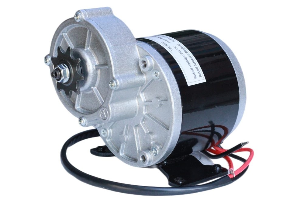 12/24 Volt DC 250W/350 Watt Gear Reduction Brushed Electric Motor with 9 Tooth Sprocket for E-Bike Mini Bikes Scooter 24V 350W 【DC Geared Motor】This is a gear reduction motor, made of premium material, sturdy and durable. This geared motor produces more low-end torque than your standard motor. 【Reversible Motor】This motor is capable of rotation in either the clockwise or counterclockwise direction by reversing the motor's power wires. 【Compatible with】Suitable for Motorized bicycle,moped, bikes, pocket bikes and electric dirt bikes,scooters,e-bike,and so those who want to make their own customized electric vehicle, whether it's a scooter, an electric bike or something else, this motor is great. 【Specification】 Reduction motor, this geared motor produces more low-end torque than your standard motor, power 350W,24VDC permanent magnet generator, Rate Speed 330r/min,18A current. Brush DC motor, aluminum body, all copper coil, heat resistance, natural air cooling, more silent,more durable. 24 Volt DC 350 Watt Gear Reduction Brushed Electric Motor with 9 Tooth Sprocket for E-bike Mini Bikes Scooter