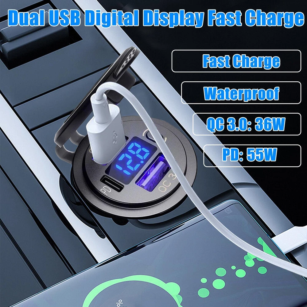 Product Description Features: This USB C car charger outlet socket is designed to deliver fast charging for all your devices. With a 55W Power Delivery (PD) port and dual 36W Quick Charge 3.0 (QC3.0) ports, you can recharge your devices at remarkable speeds. Equipped with multiple ports, you can charge up to three devices simultaneously, eliminating the need to prioritize one device over another. The USB C PD port ensures that even power-hungry devices like laptops can be charged efficiently. The Power Delivery (PD) technology ensures intelligent and safe charging. It automatically adjusts the power output to match your device's requirements, preventing overcharging and overheating. The dual Quick Charge 3.0 ports are perfect for devices that support this technology. Get up to 4 times faster charging speeds compared to conventional chargers. Built to withstand the rigors of road trips and outdoor adventures, this charger is made from high-quality materials that ensure durability and longevity. Its sleek design blends seamlessly with your vehicle's interior. Specifications: Voltage: 12V-24V Connectivity: Dual USB, USB-C(PD) Input: USB 12-24V PD Output Power: 55W QC3.0 Output Power: 36W Measured Voltage: 6-30V Application: 12V/24V car, truck, boat, marine, golf cart, RV,ATV/UTV, etc. Package Includes: 1* 12V Car charger with voltmeter 1* 60cm Wire cable with inline 10A fuse If you have any doubts or uncertainty about this item, contact us with no hesitation, we are always here and will solve your problems. Thanks and wish you a nice day! About Us We dedicated to provide excellent products and services for all customers on ebay. hope we all can have a nice experiences on eBay. Payment We accept all verified payment through PAYPAL payment. Shipping Usually, Item will be shipped within 1-2 working day after full payment is received. Normally, you will receive the item in 5-7 days. Please contact us if you don’t receive the items after 10 working days after the payment If you have any questions about shipping, please feel free to contact us. Returns Always believe we can solve problems by communication if it comes to any problems about products or any others. If it comes to a return, the products must be intact and as original when you received, and should be within 30 days after you received it. Contact Us Work time: 9:00 AM to 18:00 PM Beijing Time You can contact us at anytime you want, we will reply all messages at the first time. powered by