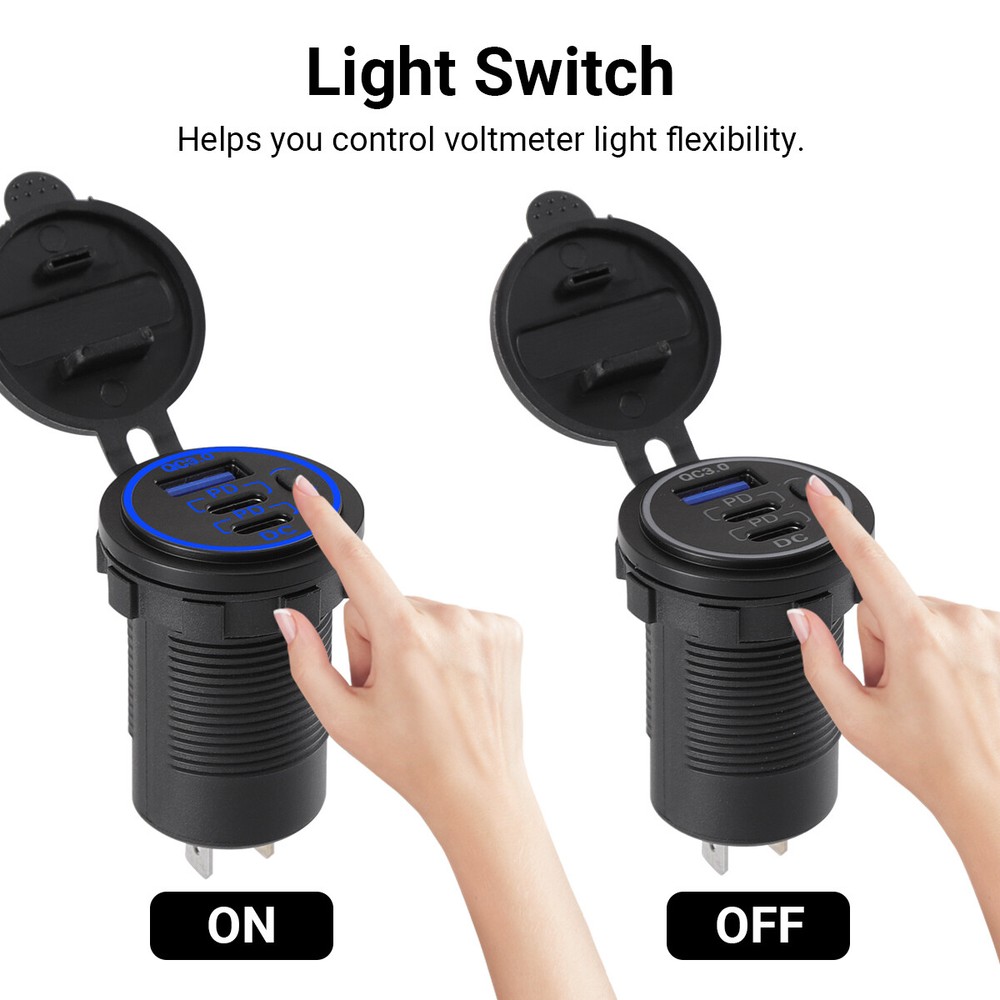 Features: Dustproof, Fast Charge, LED Voltmeter, ON/OFF Switch Voltmeter Color: Red Items Included: Car Charger, Positive and Negative Connection Cable Connectivity: USB-C Brand: Unbranded Compatible Brand: Universal Color: Black Suitable for: RVs, boats, cars, motorcycles, trucks etc. Material: ABS Type: Car Charger Manufacturer Part Number: Does not apply MPN: Does Not Apply Input Voltage: 12V-24V Maximum output power: QC3.0 (18W)+PD20W+PD20W Compatible Model: Universal Number of Ports: 3 Number of port: 3