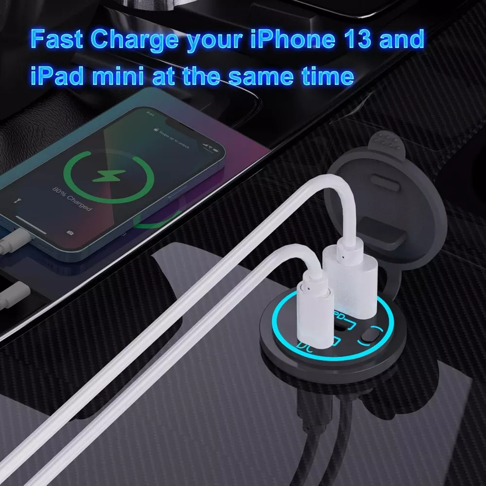 12V-24V Fast Car Charger QC3.0 PD36W USB C Outlet for Boat RV Marine