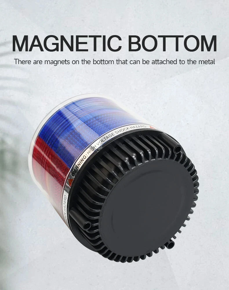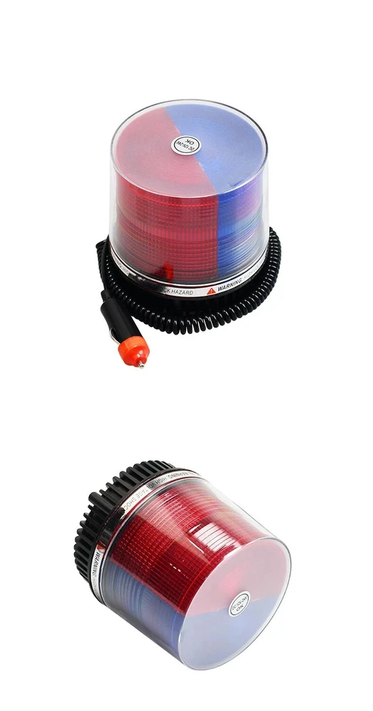 12V-24V LED Warning Light Magnetic Car Roof Strobe Signal Lamp Red Blue Rotating Road Engineering Emergency Strobe Light Specification 1.Voltage: 12V - 24V 2.Size: L107*H112mm 3.Material: PC lampshade + LED 4.Color: yellow / Red Blue Features 1.A good warning light in foggy and rainy days, to avoid car accident. 2.Add new charm to your car, to distinguish your car with other cars. 3.A good warning light in emergency car parking. 4.Alarm light ,Engineering light ,Police lamp ,Car Magnet Warning light, Strobe light ,Caution Light, Plug this into your cigarette lighter and with the magnetized bottom placed on any exterior metal.