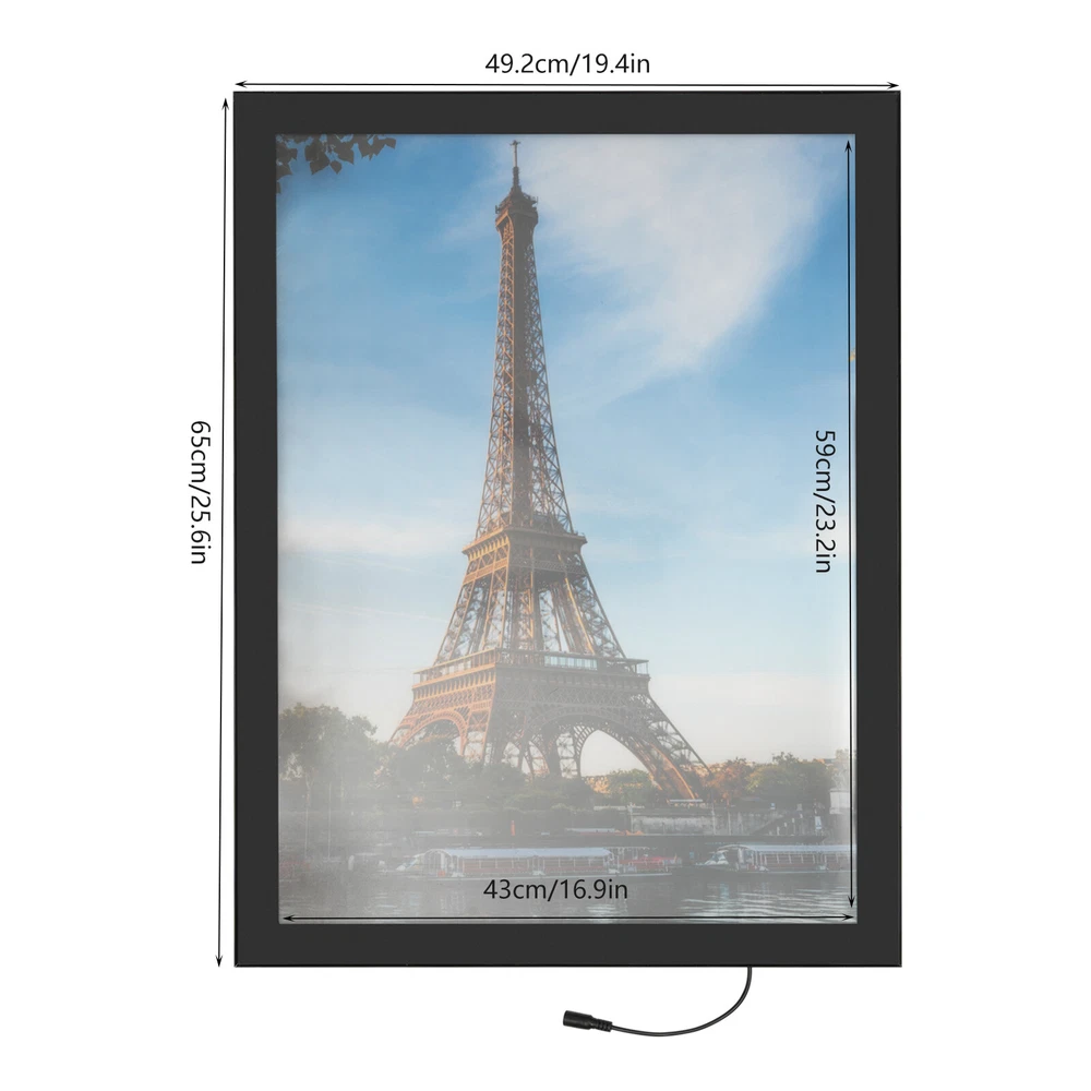 Power Source: Corded Electric Model: JCH-1230 Theme: Movie Gross Weight: 2.5kg/ 5.51 lbs Shape: Rectangular Power Consumption: 12W Item Width: AS PICTURE SHOW Inner Frame Size(L*W): 59*43cm/23.2*16.9 in Illumination Type: LED Item Height: 25.6 in Sign Style: Billboard Product Thickness: 18mm/0.71 in CRI: >85 Item Length: 19.4 in Color: Black Output: 12V, 3A Efficiency: E Color Temperature: 9000-10000K Style: Modern Net Weight: 2kg/ 4.41 lbs Brand: Unbranded gtin13: Does not apply Mounting: Wall Mounted Input: AC 100-240V, 50/60Hz, 1A UPC: Does not apply Outer Frame Size(L*W): 65*49.2 cm/ 25.6*19.4 in Material: Acrylic, Aluminum Alloy, PVC Package Size: 70*50*6cm/27.56*19.69*2.36 in Placement Style: Wall Mounted Type: Photo Picture Frame Photo Capacity: 1 Industry: Retail