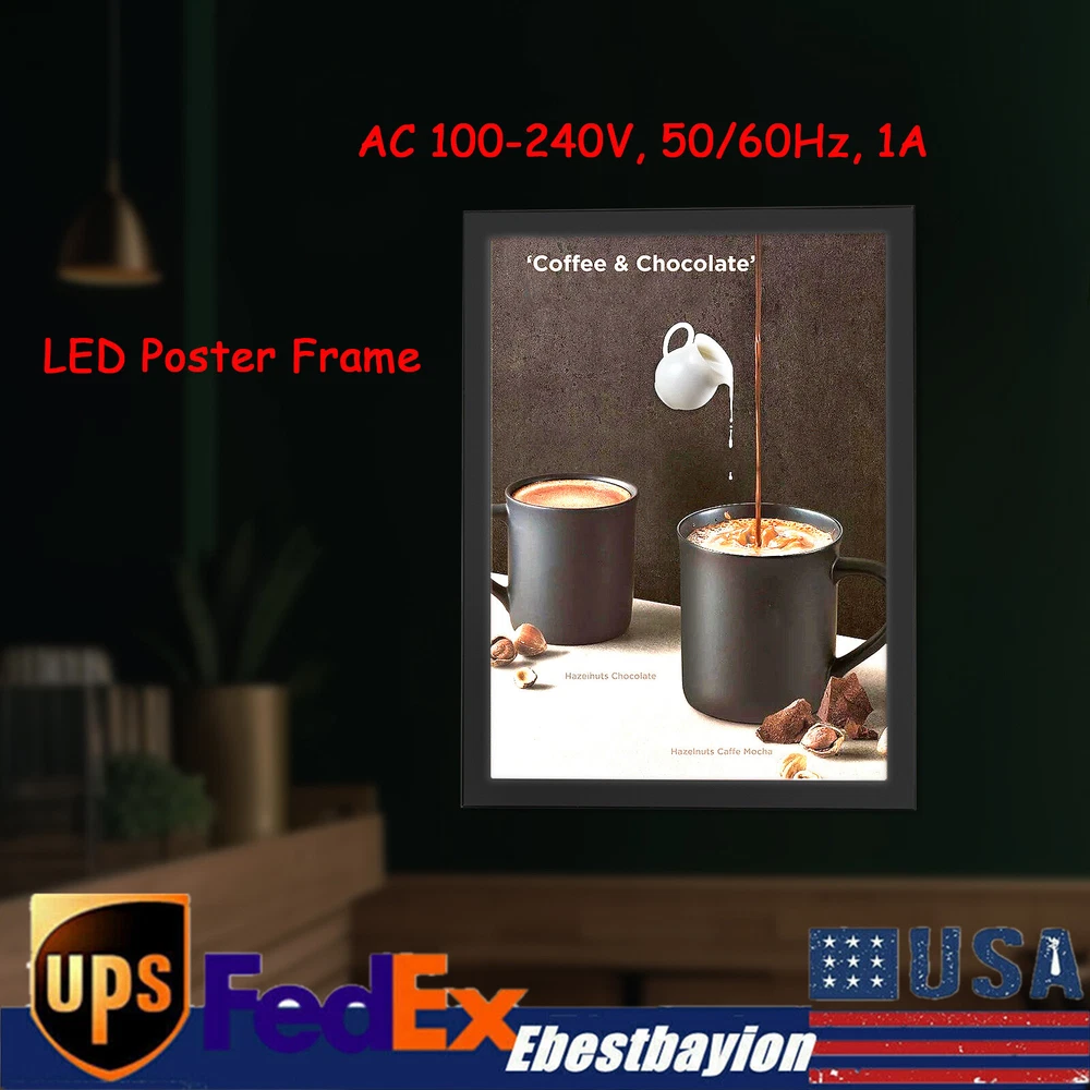 Package Included 1* Led Poster Frame 1* Adapter 1* Dimmer Switch 2* Sample Posters 1* Power Cord 1* Suction Cup 12W Movie Poster Frame LED Light Box Art Picture Advertising Display Frame Sign Specification Color: Black Theme: Movie Style: Modern Shape: Rectangular Assembly Required: Yes Target Audience: Unisex Adult Material: Acrylic, Aluminum Alloy, Pvc Process: High-temperature Baking Paint, Spraying Mount Type: Wall Mount, Vertical, Horizontal Frame Type: Poster Frame, Magnetic Frame Power Cord Length: 1.2m/3.9ft Applicable Poster Size: A2 Plug Type: Us Standard Power Source: Corded Electric Light Source: Led Smd Beads ( Included ) Power Consumption: 12w Color Temperature: 9000-10000k Cri: >85 Efficiency: E Adapter Model: Jch-1230 Input: Ac 100-240v, 50/60hz, 1a Output: 12v, 3a Product Thickness: 18mm/0.71 in Outer Frame Size(L*W): 65*49.2 Cm/ 25.6*19.4 in Inner Frame Size(L*W): 59*43cm/23.2*16.9 in Package Size: 70*50*6cm/27.56* 19.69*2.36 in Gross Weight: 2.5kg/ 5.51 Lbs Net Weight: 2kg/ 4.41 Lbs Package Included 1* Led Poster Frame 1* Adapter 1* Dimmer Switch 2* Sample Posters 1* Power Cord 1* Suction Cup Description Our Led Poster Frame Is Ideal for Commercial Promotion and Attracting Attention. Its Gorgeous Artistic Effects Help You to Deliver Eye-catching Promotional Messages and Thus Get More Footfall to Your Shopping Mall or Event. It Is Made of High-quality Materials and Has High Brightness, Which Would Be Ideal for Replacing a Regular Chalkboard Display Board! Key Features Build to Last: High-quality Acrylic, Aluminum Alloy, Pvc, High-temperature Paint Baking Process, and Spraying Technology Make the Item Durable and Solid, with Good Wear Resistance , Corrosion Resistance , and Resistance to Deformation, It Can Better Keep Beautiful and Practical Without Frequent Replacement. Energy Saving: High-quality Energy-saving Led Lights Are up to 85% More Energy Efficient than Halogen Lights. the Low Energy Consumption(18w) Makes It Consume less Electricity but Has a High Brightness Output That Can save You Money on Your Electricity Bill. Powerful Tool: This Eye-catching Led Poster Frame Lights up Your Pictures, Photos, Posters, Marketing Advertisements, Promotional Activities, Important Information, Etc. like a Neon Sign and Attracts the Attention of Customers/Viewers Day and Night, so Your Shop Will Have More Traffic. It Also Adds a Unique Vibe to Your Bedroom, Thus Showing Your Elegant Life Attitude to Everyone. Large and Bright: the Large Size( 23.2*16.9in ) Can Bring You a Wide Visual Experience. the Led Light Source with High Color Rendering (>85) and 9000-10000k Color Temperature and the Nanocrystal Light Guide Plate with Uniform Brightness Make This Product Deliver a Bright and Evenly-distributed Illumination Across the Entire Frame Surface, Ensuring a Shadow-free and Spots-free View of Your Movie Poster. Adjustable Brightness: You Can Use the Equipped Dimmer Switch to Steplessly Adjust the Brightness You Want According to the Usage Environment so That the Whole Display Can Be Bright and Not Harsh. Magnet Adsorption Design: the Magnet-absorption Design Allows You to Easily Pull out the Panel with the Equipped Suction Cup, Making It Effortless to Install/Disassemble and Replace Posters. Beautiful Appearance: the Simple Rectangular Structure and Stylish Black Frame Give the Product a Unique Sense of Modernity and Design, Which Is an Attractive Decoration. Simple Installation: Its Simple Structure, Thin Frame(0.71inch), and Hanging Hooks Allow You to Vertically or Horizontally Install This Product on the Wall with Screws. Ideal Gift: with a Stylish Appearance and Practical Functions, This Item Is an Excellent Gift for Your Family, Friends, and Loved Ones Who Want to Make an Exhibition, Advertisement, or Decoration. Customer Service : We Are Honored That You Have Chosen Our Product. We Have Sufficient Confidence in the Quality of the Product so That You Can Buy It Confidently. but If You Have Any Questions, You Can Contact Our Customer Service, He Will Patiently Answer and Solve Your Problems. Details Long Power Cord: It Comes with a 3.94ft Long Power Cord for Added Convenience and Mobility. Acrylic Cover: It Ensures the Uniform Distribution of Light and Allows for Clear Visibility of Printed Materials and Posters, As Well As Protects Artwork from Dust and Direct Light to some Extent. Application This Product Is Very Suitable for Movie Theaters, Promotions, Retail Stores, Restaurants, Art Displays, Trade Shows, Banks, Hospitals, Libraries, Counters, Offices, Companies, Bars, Menu Boards, Jewelry Stores, Hotels, Studio s, Milk Tea Stores, Cafes, Shopping Centers, Metro Stations, Airports, Train Stations, Storefronts, and Other Household and Commercial Indoor or Outdoor Areas for Exhibition/Advertising/Decoration. Steps to Replace the Poster Pull out the Panel with the Equipped Suction Cup, Remove the Old Poster Fit Your Image and Close the Cover. Notes Please Do Not Have Important Content Within at Least 10mm of the Edge of the Screen. Please Tear off the Protective Film Before Using It. Please Allow the Slight Color Difference Caused by the Shooting Light and the 1-3 Cm Error Due to Manual Measurement, and Make Sure You Do Not Mind Before Ordering. Payment Delivery details Terms of sales About us Contact us Payment We accept ebay payment 。 Fees such as import duties, taxes are not included in the item price or shipping costs. These charges are the buyer's responsibility. Delivery details Shipping: 2-9 working days to: USA Terms of sales We maintain high standards of excellence and strive for hundred percent customer satisfaction. Feedback is very important to us. We hope that you contact us immediately before you give neutral or negative feedback, so that we can address your concerns. It is impossible to address issues if we do not know about them! About us Your satis faction is our ultimate goal. We work hard to earn your trust and future business. Our certified technicians ha