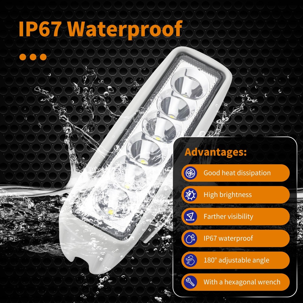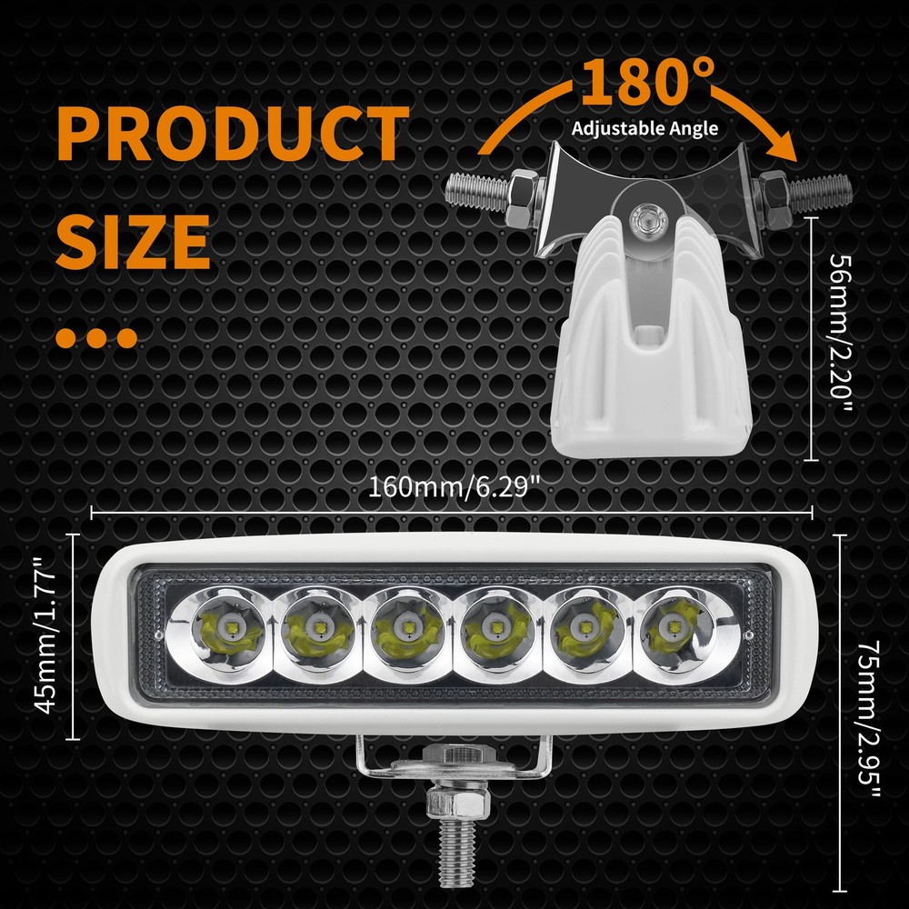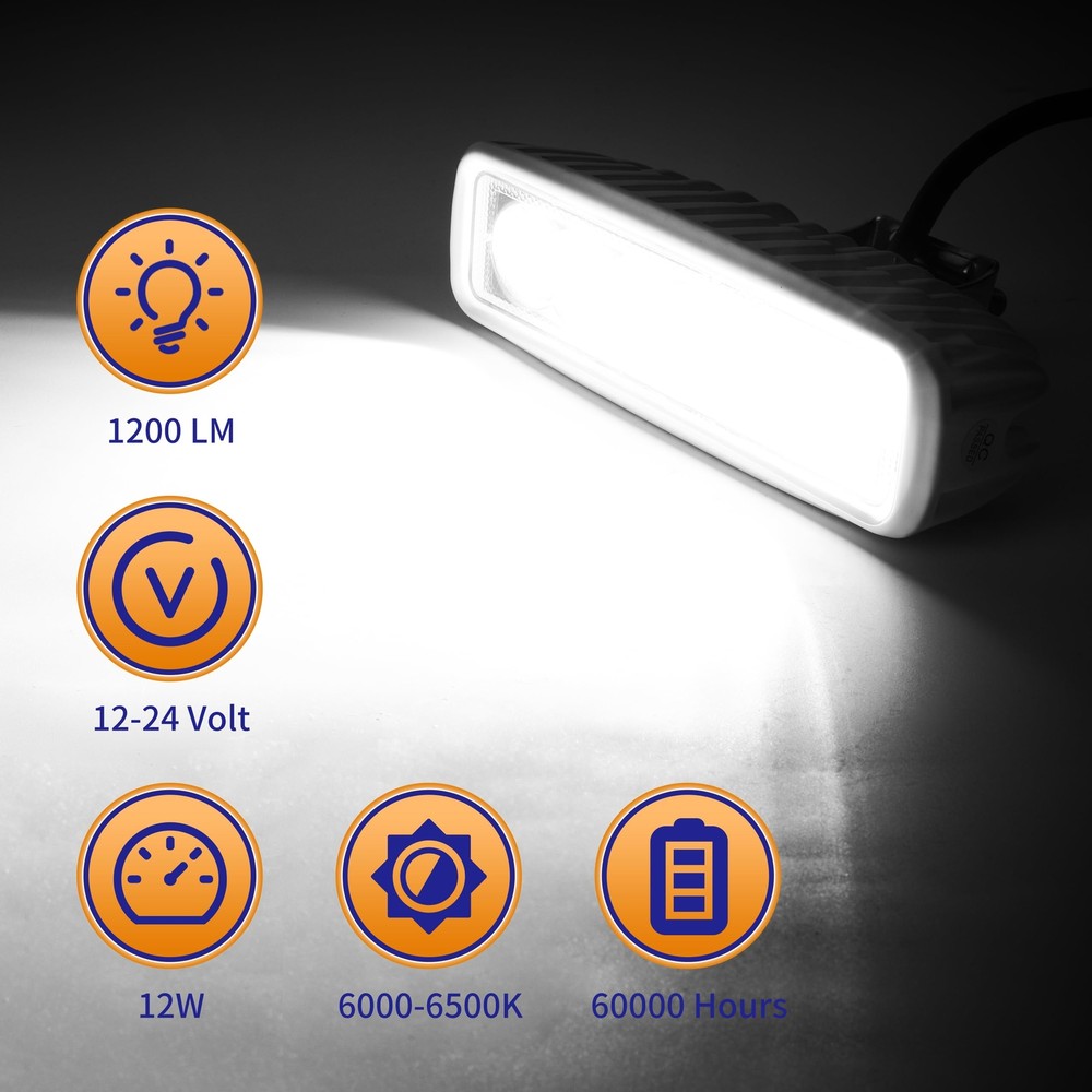 ☀【High Quality Marine Led Light】This spreader lights adopt a durable aluminum housing and stainless steel mounting bracket, which can be adjusted 180 ° to find the appropriate installation angle. ☀【120° LED Marine Spotlights】 The boat light bar uses 6pcs LED CREE beads, and this marine spreader light with a lighting range of 120 ° emits a brightness of 1200LM to achieve clear visibility and improve the safety of activities such as fishing and driving at night. ☀【Widely Application】This marine spotlight is usually suitable for night fishing, night ride. Our led spreader light is also widely used for marines, trucks, tractors, off-road vehicles, jeeps, pickup trucks, SUVs, ATVs, UTVs, golf carts, motorcycles, etc. ☀【Waterproof Led Marine Spotlights】Specially: RVZONE Led Boat Lights come with a special hexagonal wrench, Voltage: 12-24V, Power: 12W, Lumen: 1200LM, Color temperature: white light 6000-6500K, Waterproof: IP67. ☀【Lifetime Customer Service】We provide 12 months warranty for our night fishing lights. If there is any quality problem with our waterproof deck light, please kindly contact us at any time.