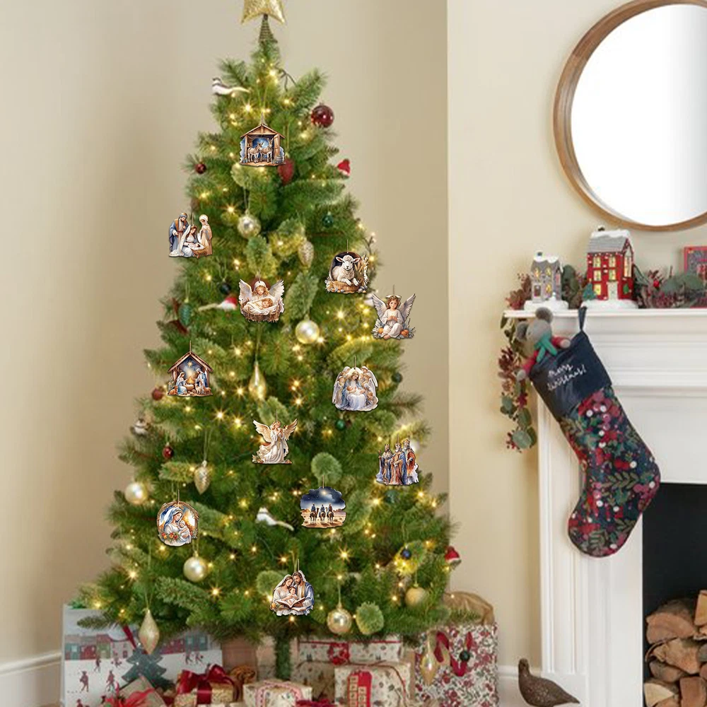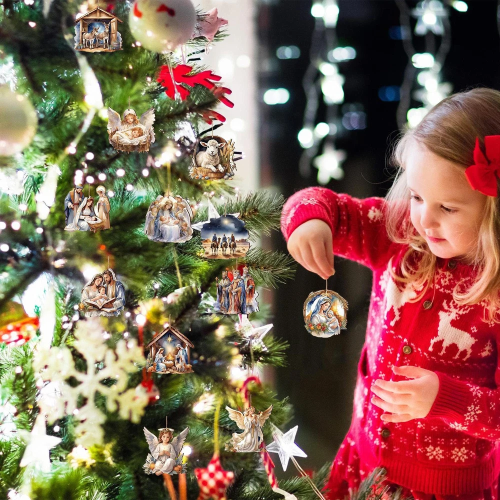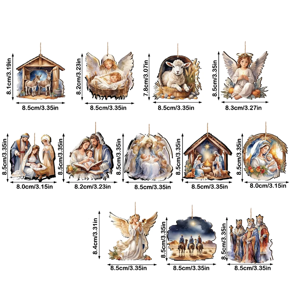 12X Christmas Carved Wood Keepsake The Birth Of Jesus Decor Christmas Tree Decor