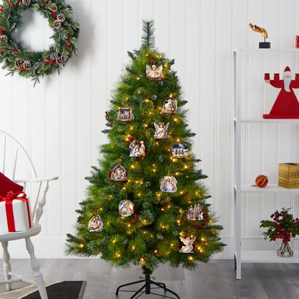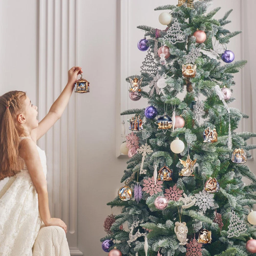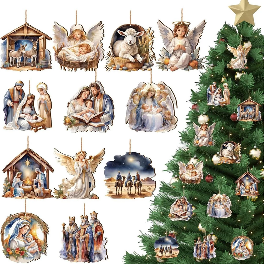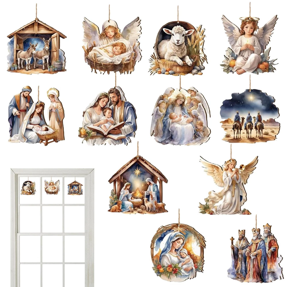 12X Christmas Carved Wood Keepsake The Birth Of Jesus Decor Christmas Tree Decor