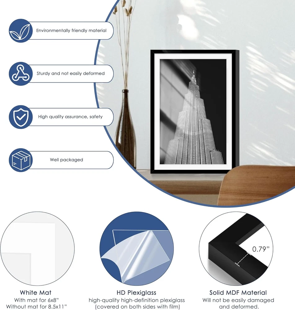 Store New Arrivals Add to Favorite View Feedback Contact 12X18 Picture Frame Set of 6, Display Pictures 11X17 with Mat or 12X18 without Mat for Wall Mounting Display, Poster Frames Collage for Wall Decor, Black. Description Style Minimalist Number of Items 6 Finish Types Polished Item Shape Rectangular Unit Count 6.0 Count Product Dimensions 12"L x 18"W Frame Material Engineered Wood, Wood Occasion Type Mother's Day, Grandparents Day Additional Features Engineered Wood Finish Type Polished Frame Type Poster Frame Occasion Mother's Day, Grandparents Day Target Audience Unisex Adult Item Dimensions L x W 12"L x 18"W Orientation Vertical, Horizontal Mounting Type Wall Mount Color Black Cover Material Plastic Shape Rectangular Back Material Type Medium Density Fiberboard Size 12x18 STURDY MATERIAL: The PEALSN 12x18 frame set includes 6 well-built black picture frames, these super high-quality frames are made of sturdy wood rather than plastics, great looking. The mounting board is a durable MDF wood. Sturdy, durable, anti-drop it can protect your photo against dust, moisture, or insect damage, keeping it new for years. VERSATILE DISPLAY: This 12x18 poster frame black can hang horizontally or vertically for a gallery-style wall mount. Watch your cherished photos come to life and add interest to a wall or tabletop in your home. SIZE: 12 x 18 frame is designed to fit an 11x17 photo with a mat or, if you remove the mat, it can fit a 12x18 photo. They are suitable for displaying your family photos, landscape photos, certificates, diplomas, artwork, etc. GREAT GIFT: Each 18x12 picture frame with a black woodgrain finish. Simple design, smooth lines. These chic and beautiful frames make for a great gift for a wedding, baby shower, graduation, anniversary, holidays, birthday, or vacation. PROTECTIVE PACKING: Our 12 x 18 picture frame are carefully packaged to ensure product safety. Don't have to worry about receiving damaged products. Product Description Preserve your most cherished memories with the PEALSN Picture Frame, the perfect addition to your home decor. THE PEALSN PICTURE FRAME ADVANTAGE: Wall Display Includes D-ring hooks to easily hang artwork or photographs in either portrait or landscape orientation; making them perfect for any use. Protective Plexiglass The transparent plexiglass front and the attached cushion can not only protect the integrity of your artwork, but also create a beautiful and professional presentation effect. In addition, the plexiglass is shatterproof, so you don’t need to worry about falling off the table and causing it to break High-Quality Material MDF medium-density fiber material has the advantages of not being easily deformed and not easily affected by moisture. The black wood grain finish has the advantages of moisture-proof, anti-corrosion, abrasion resistance, and high temperature resistance. Simple and Thoughtful Design Simple design, smooth lines, Randomly match and decorate every corner of life. For a variety of scenarios ABOUT US We offer the best prices around on high quality products. Our E-store includes media such as books, movies, music and games while offering electronics, toys, sporting apparel, clothing, tools, general home, garden items and more. SHIPPING We are always working hard to ensure your package arrives as soon as possible. Please understand that some factors like weather, high postal traffic, and the performance of shipping companies are outside of our control. We offer free shipping to the lower 48 states and ship within 2 business days of payment, usually sooner. We do not accept P.O. Boxes. Please provide a physical address. For shipping outside of the continental USA, we only use eBay's Global Shipping Program.The item is shipped to KY and then sent to the rest of the world. International customers are responsible for all duties and taxes. Continue to check out in order to calculate costs for shipping the item to your country. Messages regarding eBay's Global Shipping Program MUST be directed at eBay EXCLUSIVELY. RETURNS We offer a 30-Day Return Policy on items which you are not completely satisfied with. You have the option for a full-refund or an exchange of the item. No returns are available on items shipped outside of the USA. PAYMENT We accept PayPal. CONTACT US This page content is yet to come Please ad us to your favorite seller and visit again later Thank You CUSTOMER SATISFACTION We try our very best to make sure every customer is completely satisfied. If there's a problem, message us! We're happy to help. WE ACCEPT Copyright © 2021 AutoDS. | All Rights Reserved