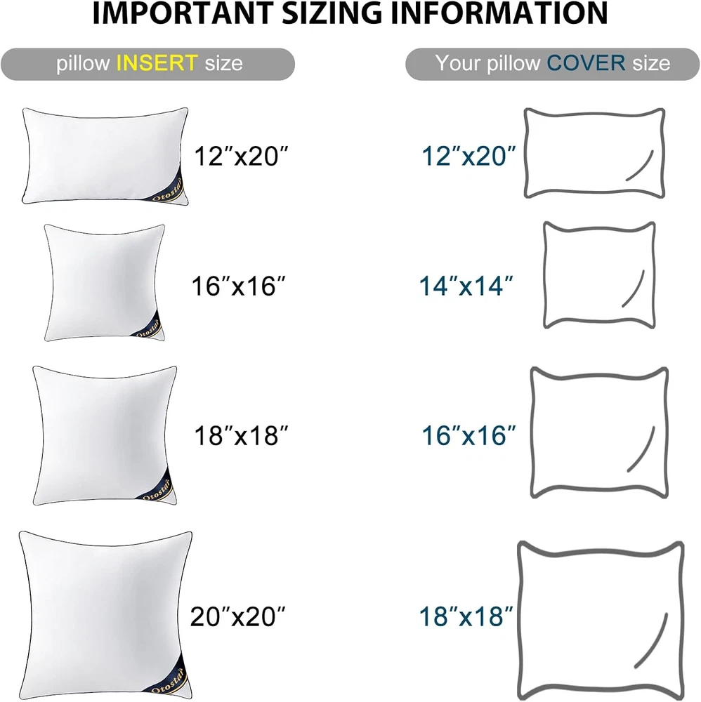 Store New Arrivals Add to Favorite View Feedback Contact 12X20 Pillow Insert - Throw Pillow Insert with 100% Cotton Cover - Lumbar Rectangle Form Pillow Sham Stuffer - Decorative Couch Cushion Pillow Description Item model number 1 Style Modern Pattern Plain Age Range (Description) Adult Country of Origin China Theme Plain Item Firmness Description Firm Unit Count 1.0 Count Product Dimensions 12"L x 20"W Pillow Type Throw Pillow Insert Model Name pillow insert Closure Type Zipper Indoor/Outdoor Usage Indoor Item Weight 1.04 pounds Fill Material Polyester Material Feature Natural Occasion decoration Special Feature Washable Color 1 Pack Cover Material Cotton, Polyester Shape Square Recommended Uses For Product Back Sleeper, Lounging Fabric Type 100% Cotton Product Care Instructions Hand Wash Only Size 12 x 20 Inch 【Premium Material】- These pillow inserts are made of 100% cotton and 4D high-quality filling,so they are very soft and durable,at the same time they can rebound quickly,provide the best experience for you. 【Soft and Resilient】- Upgrading the process of filling with combing 7D polyster that provides ultra thoughness ,which ensures all pillow inserts are well-filled and suitable softness, while having sufficient support and will not become hollow. 【Poplin Piping Technology】- The edge of the pillow inserts adopts poplin piping technology, tight stitching provides better durability and tidiness, efficiently prevents loose threads and broken edge. 【Delicately packaged】- Pillow insert 12'' x 20'' square form. 1 independent packaging, the package bag is delicated designed, a perfect gift for any occasion. Be shipped vacuum packaged and please gently tapping it to fully fluff up. 【Easy Care】- Our throw pillow inserts are easy to clean. It is recommended to be washed by hand or lightly washed with mild detergent and tumble dry,regular cleaning can help the pillow inserts be more durable and fluffy. Product Description OTOSTAR - Bright Up Your HOME Decor OTOSTAR control quality from beginning to end, including fabric sourcing, sewing and packing. Deep Blue Piping Delicate deep blue piping featured the inserts more elegance. With poplin piping technology to reduce the edge got any threads are loose or broken. Ultra-soft Microfiber Filling Filled with 100% High-quality soft microfiber filling. It can be fluffy but can't be very supportive if you are looking for a strong supportive pillow. Designed Pocket and Zip With a nice designed zip on side of the inserts to show you the material inside, or you may add more or take out some for your need. The pillow insert is packaged in a Vacuum Bag. For optimal use, please prepare according to the below: Take them out of the vacuum pack Pull the filler at all angles for 2-3 minutes, and then the pillow insert will become fluffy. The best way to recover fluffily is to put it under sunlight for 3-4 hours. ABOUT US We offer the best prices around on high quality products. Our E-store includes media such as books, movies, music and games while offering electronics, toys, sporting apparel, clothing, tools, general home, garden items and more. SHIPPING We are always working hard to ensure your package arrives as soon as possible. Please understand that some factors like weather, high postal traffic, and the performance of shipping companies are outside of our control. We offer free shipping to the lower 48 states and ship within 2 business days of payment, usually sooner. We do not accept P.O. Boxes. Please provide a physical address. For shipping outside of the continental USA, we only use eBay's Global Shipping Program.The item is shipped to KY and then sent to the rest of the world. International customers are responsible for all duties and taxes. Continue to check out in order to calculate costs for shipping the item to your country. Messages regarding eBay's Global Shipping Program MUST be directed at eBay EXCLUSIVELY. RETURNS We offer a 30-Day Return Policy on items which you are not completely satisfied with. You have the option for a full-refund or an exchange of the item. No returns are available on items shipped outside of the USA. PAYMENT We accept PayPal. CONTACT US This page content is yet to come Please ad us to your favorite seller and visit again later Thank You CUSTOMER SATISFACTION We try our very best to make sure every customer is completely satisfied. If there's a problem, message us! We're happy to help. WE ACCEPT Copyright © 2021 AutoDS. | All Rights Reserved