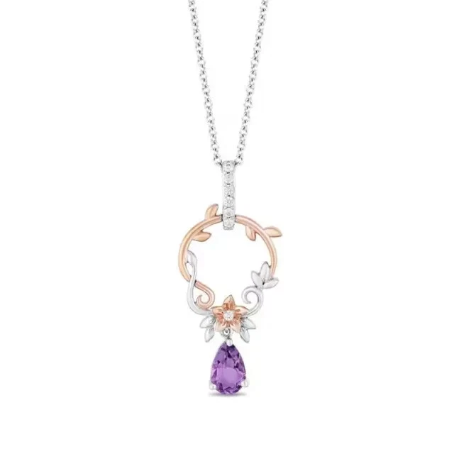 1.2ct Pear Cut Amethyst Unique Women's Pendant 14K White Gold Plated with Chain