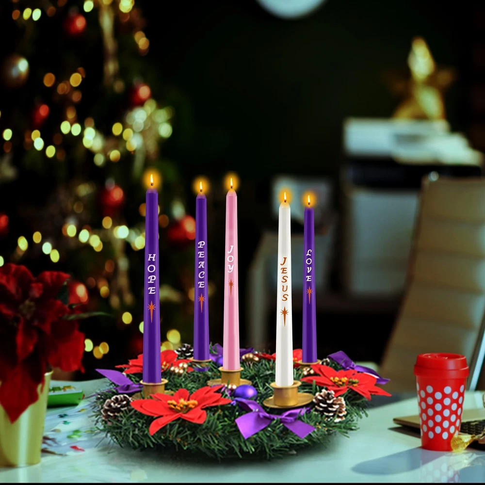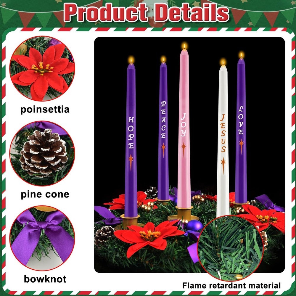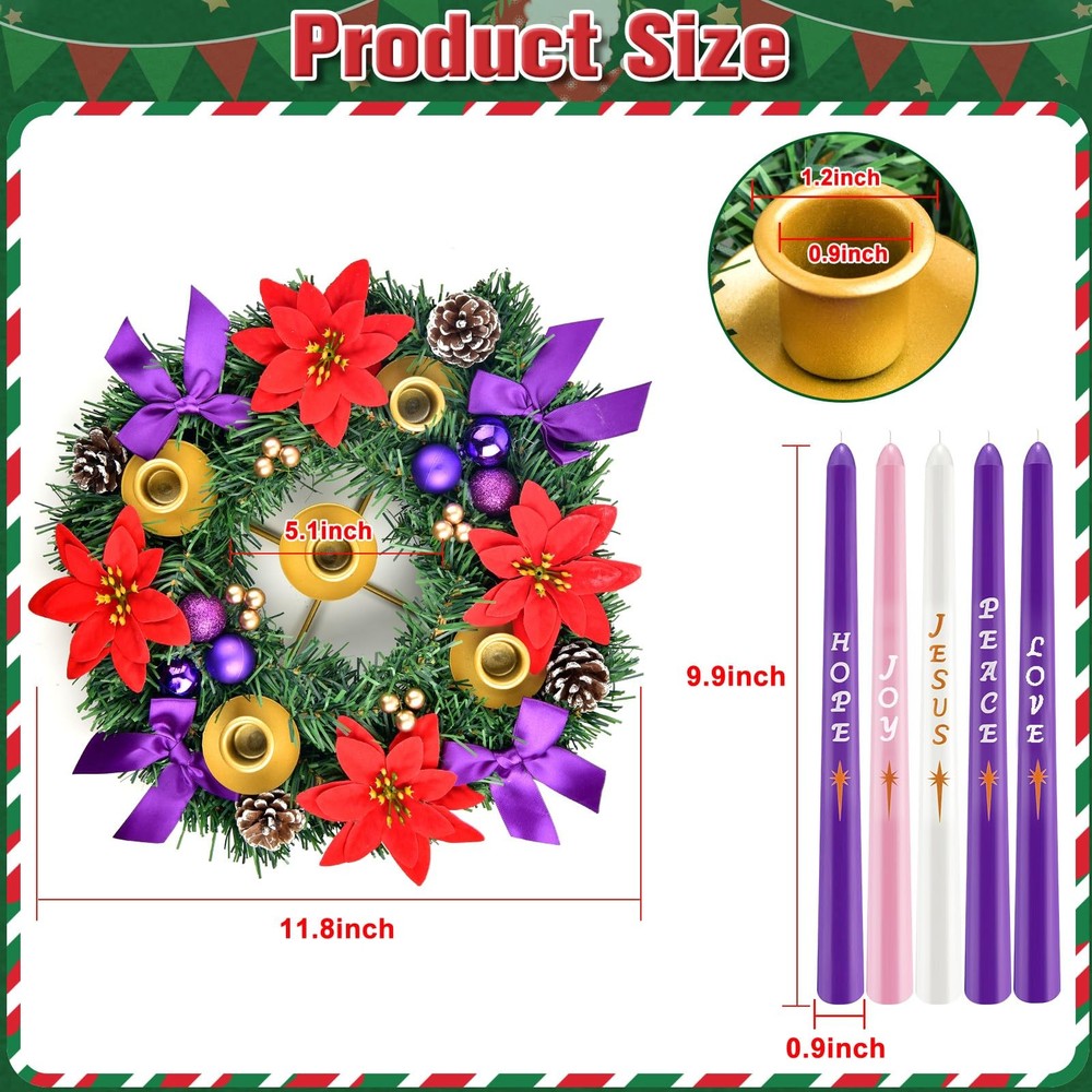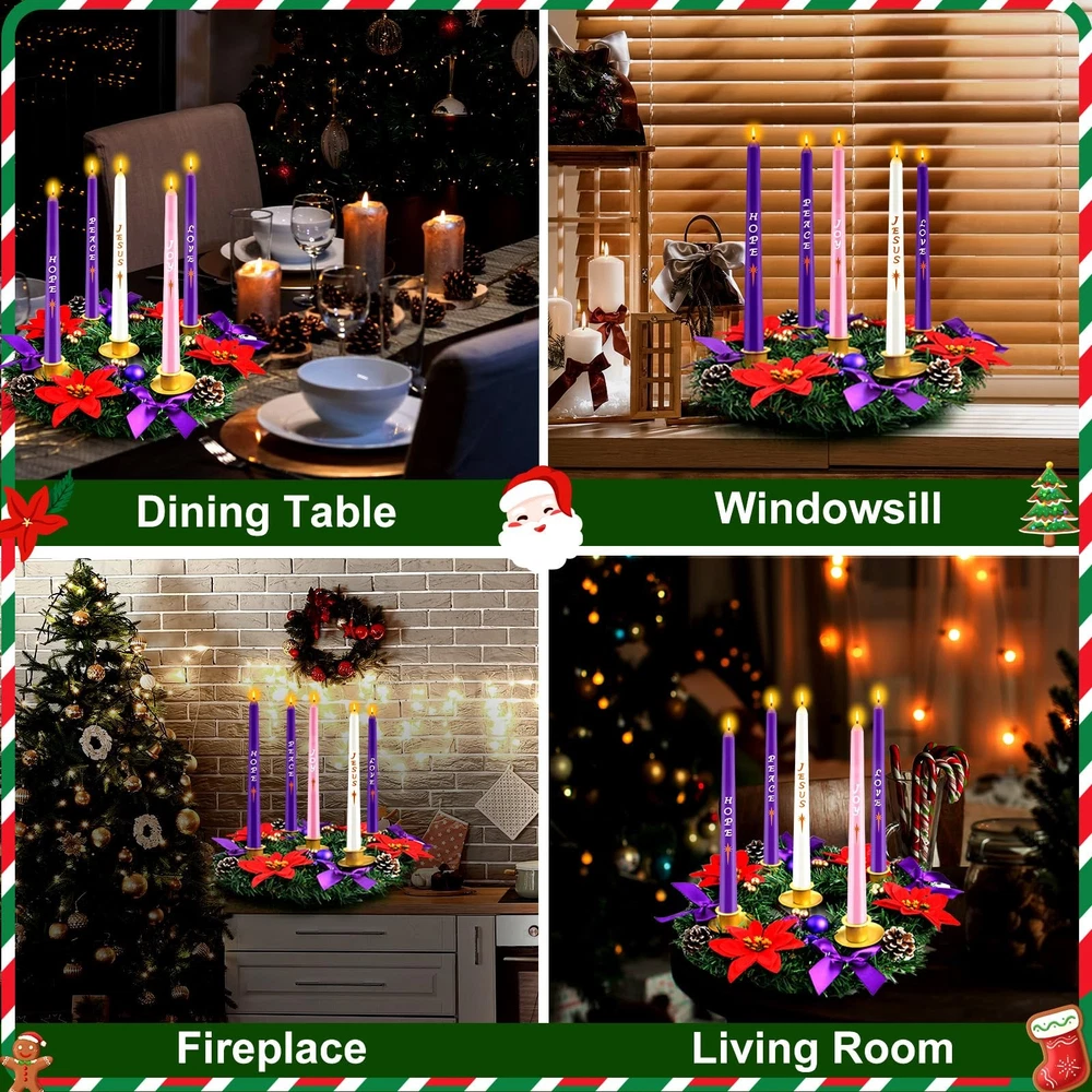 12in Christmas Advent Wreath 5 Candle Holder with Candles, Metal Cups for Tap...
