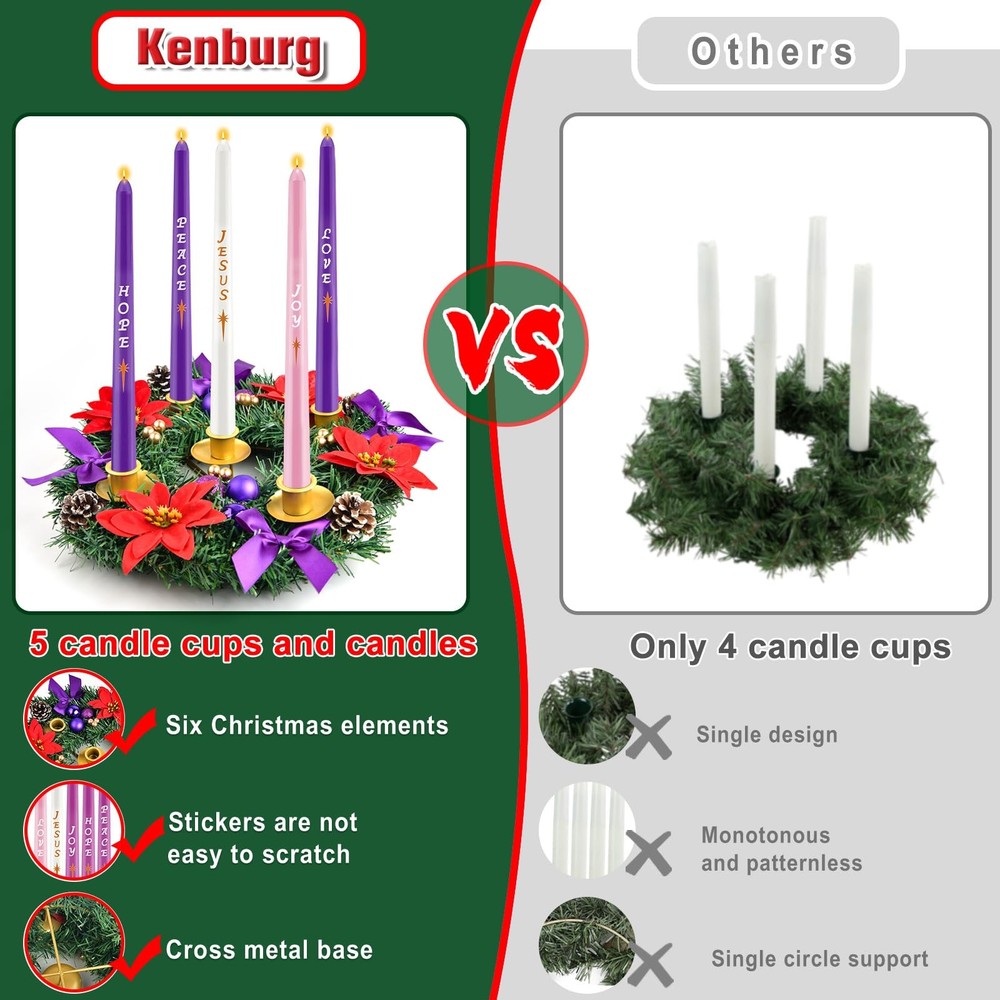 Home12in Christmas Advent Wreath 5 Candle Holder with Candles, Metal Cups for Tap...