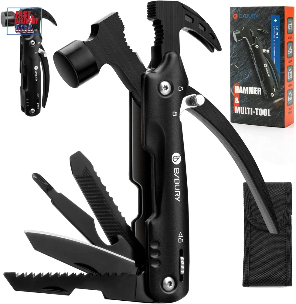 Store New Arrivals Add to Favorite View Feedback Contact Hammer Multitool Gifts for Men Women, 12 in 1 Survival Gear Outdoor Multi Tool, Gifts for Dad Him Husband Gadget Gifts, Cool Gadgets Survival EDC Multi-Tool for Outdoor, Camping, Hiking Description Item model number HM004 Item Package Quantity 1 Batteries Required? No Number of Pieces 1 Color Black Included Components Plier, Hammer, Wire Cutter, Knife, Screwdriver, Saw, Bottle Opener, Sheath Material Stainless Steel Drive System Phillips Item Weight 253 Grams Batteries Included? No Folded Size [Approximately] 6 inches (l) x 3 inches (w) x 1 inch (h) Size Hammer Package Dimensions 6.73 x 3.46 x 1.54 inches A Fantastic Chooise for your loved ones. Every man needs the multi-purpose tool. UNIQUE Chooise FOR MEN: If you're looking for the best present for men who have everything, like your father, husband, boyfriend, grandpa, brother and friend on Christmas, Thanksgiving Day, Father’s Day or Birthday, the BIBURY multi-functional hammer is your unique choice. The camping multi tool is very practical whether he is camping, hiking, climbing, fishing or working in the yard. It's a tool for fixing and repairing at home, also a survival multi-tool outdoor ALL IN ONE MULTI TOOLS HAMMER: It contains 12 different tools including Hammer, Pliers, Flathead Screwdriver, Saw, Wire Cutter, Bottle Opener, File, Nail Claw, Straight Knife & Phillips Screwdrivers and more. It's made of high-grade stainless steel and the tools are covered with durable black oxidation, this maes them rust-resistant, service life is extended perfectly. Definitely super cool dad presents and gadgets for men. A MUST-HAVE EDC: These tools for men are strong enough to cut, pry, hammer nails, twist screws, open fire hydrants, saw wood, strong enough to break window glass, cut off seat belts in dangerous escapes, etc. It's suited for outdoor adventures, exploration, camping trip, fishing, hunting, hiking, DIY jobs or just keeping in the car for emergency use EASY TO CARRY: Come along with solid nylon pouch that holds the equipment well. Multiple tools in one design save your toolbox space, it's convenient to take out. Heavy Duty, Ergonomic And Lightweight Stainless Steel construction Multitool Hammer is a super unusual outdoor present for men CUSTOMER SERVICE: BIBURY team provides customers with quality products and services. If you have any problems after the purchase, please let us know without any hesitation. We will do our best to solve problems and meet your requirements Product Description The video showcases the product in use. The video guides you through product setup. The video compares multiple products. The video shows the product being unpacked. BIBURY 12 in 1 Hammer Multitool Camping Tool This hammer multitool include pliers, hammers, double saws, screwdrivers, tool pliers, nail removers, bottle openers, dental knives, master knives, Phillips screwdrivers, files and more. Stainless Steel Material It's strong enough to cut, pry, tighten screws, open fire hydrants, break car windows, and more. Quick Start The notches on the handle of the camping hammer are designed for quick extraction with less energy. All In One Tool The hammer can be used for emergencies, sawing, cutting wire, and more while camping and exploring large open spaces. Double Safety Locking Device This hammer is equipped with 2 safety locks to lock the non-slip handle and the folding tool, which prevents accidental closing of the blade. BIBURY Practical and cool gadgets, ideas gift for men during the holidays If you are looking for a unique gift for your father, husband, boyfriends, grandpa on Christmas, Birthday,Thanksgiving Day, Father's Day or Anniversary, I highly recommend it as a gift or for any handy / DIY person to carry with them. 1 EASY TO CARRY 2 SERRATED BLADE 3 BOTTLE OPENER 4 WIRE CUTTER 5 FLATHEAD SCREWDRIVER 1 12 IN 1 MULTITOOL 2 CYCLING 3 FISHING 4 CAMPING 5 HIKING ABOUT US We offer the best prices around on high quality products. Our E-store includes media such as books, movies, music and games while offering electronics, toys, sporting apparel, clothing, tools, general home, garden items and more. SHIPPING We are always working hard to ensure your package arrives as soon as possible. Please understand that some factors like weather, high postal traffic, and the performance of shipping companies are outside of our control. We offer free shipping to the lower 48 states and ship within 2 business days of payment, usually sooner. We do not accept P.O. Boxes. Please provide a physical address. For shipping outside of the continental USA, we only use eBay's Global Shipping Program.The item is shipped to KY and then sent to the rest of the world. International customers are responsible for all duties and taxes. Continue to check out in order to calculate costs for shipping the item to your country. Messages regarding eBay's Global Shipping Program MUST be directed at eBay EXCLUSIVELY. RETURNS We offer a 30-Day Return Policy on items which you are not completely satisfied with. You have the option for a full-refund or an exchange of the item. No returns are available on items shipped outside of the USA. PAYMENT We accept PayPal. CONTACT US This page content is yet to come Please ad us to your favorite seller and visit again later Thank You CUSTOMER SATISFACTION We try our very best to make sure every customer is completely satisfied. If there's a problem, message us! We're happy to help. WE ACCEPT Copyright © 2021 AutoDS. | All Rights Reserved