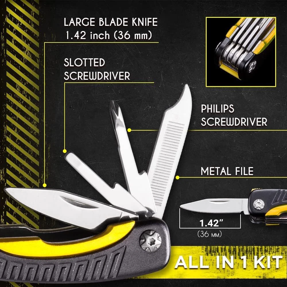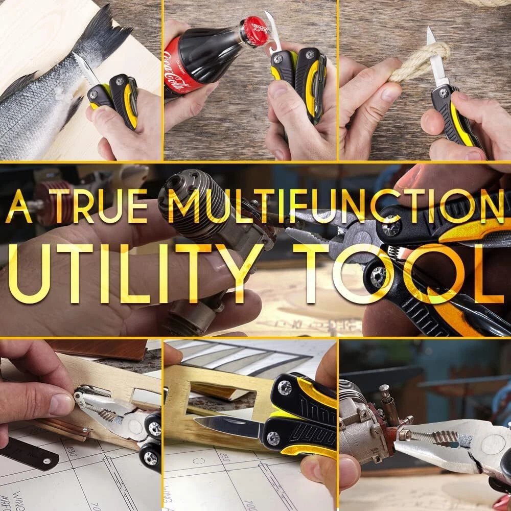 Mini Multitool Knife 12 in 1 - Small Pocket Multi Tool with Knife and Pliers - Best Small Utility Multi Purpose All in One Tools for Men Women - Best Gear Accessory for EDC Work Camping Hiking 2229 12 integrated components - spring loaded pliers, wire cutter and wire stripper, folding blade knife, serrated edge knife, bottle opener, metal file, screwdrivers, saw-like blade with wavy chisel teeth, scoring blade. High quality mini multitool. Perfect multi-tool for everything - Camping, Hiking, Hunting, Survival, Military, Army and Emergency. A perfect car, bike ,EDC multi tool for men and women. 12 in 1 Tools set is made of high quality 420 stainless steel, handle material is aluminium. Small utility tool has a total length of 4,3", weight 3,5 Oz. All in 1 tool is a modern lightweight multipurpose tool with unique skeleton design handles which significantly decrease the weight of the utility tool. Comes with a nylon sheath which makes it possible to carry the multitool on. Belt knife. Multitool can also be carried in a pocket, purse or a backpack. Lightweight gear, accessories for EDC. Great for travelers, retired and young men, cyclists, outdoorsy men, military men, fisherman, country boy, gardeners, hunters, campers, marines, working men, hikers. STOCKING STUFFERS FOR ADULTS. Excellent gift for all men from young boys to grandpas. Unique choice for your husband, dad, father in law, stepdad boyfriend, brother, grandpa, papa, groomsmen, son, uncle, nephew, cousin, boy, best friend, or any family member. Cool gift for boss, coworker, college, student, employee, retirement. Great for guy, hunter, welder, hiker, teen, or neighbor. It also fits police, fisherman, traveler, military, navy, truck drivers, camper, marines. BEST CHRISTMAS GIFT 2024. Unique present for Christmas 2025, New Year, Secret Santa, Stocking Stuffer, birthday, Anniversary, Thanksgiving, or any special occasion. Excellent stocking stuffer for both men and women. Gifts for men who have everything. Regalos de navidad para hombres. Xmas gifts for man. Perfect for men who want nothing. This gift is ideal for any woman — mom, grandma, wife, girlfriend, girls, teens, couples, mother in law, sister or daughter. Gift idea for him & her. Shipping We offer FREE shipping on all orders! We ship within Three business days of payment, usually sooner. We use a selection of shipping services such as UPS, FedEx, USPS etc. We only ship to the lower 48 states, no APO/FPO addresses or PO Boxes allowed. Local pickups and combined shipping options are not provided at this time. Return You can return a product for up to 30 days from the date you purchased it. Any product you return must be in the same condition you received it and in the original packaging. Please keep the receipt. Payment We accept payment by any of the following methods: PayPal Please pay as soon as possible after winning an auction, as that will allow us to post your item to you sooner! Feedback Customer satisfaction is very important to us. If you have any problem with your order, please contact us and we will do our best to make you satisfied. Contact Us If you have any queries, please contact us via ebay. We usually respond within 24 hours on weekdays. Please visit our eBay store to check out other items for sale! Thank you for shopping at our store.
