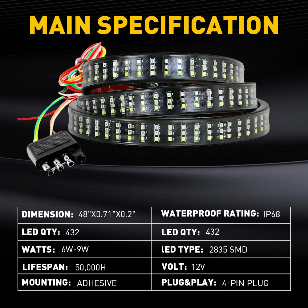 Specifications: LED number: 432pcs LED type: 2835SMD Product length: 48inch(1.2m) Waterproof grade: IP68 Service life: more than 5000h+ Wide Fitment: With working voltage of 12V DC, fit for Amber turning on most vehicles. Such as Dodge Ram 1500 2500, 3500, 4500, Ford F150, F250, Chevy, Silverado, GMC, Sierra, Toyota Tundra, and most cars, trucks, Pickup, SUV, RV, Van, trailers, etc. Features: *More advanced with 6 founctions: More advanced than other tailgate lights, our lights have 6 founctions: Braking Light, Turn signal(left+right), Reversing lights,sequential strobe light,running light. *High Brightness: 1.2m/48inch Red&Amber&White 432pcs-LED Tailgate Light Strip For Most Vehicles US Specifications: LED number: 432pcs LED type: 2835SMD Product length: 48inch(1.2m) Waterproof grade: IP68 Service life: more than 5000h+ Wide Fitment: With working voltage of 12V DC, fit for Amber turning on most vehicles. Such as Dodge Ram 1500 2500, 3500, 4500, Ford F150, F250, Chevy, Silverado, GMC, Sierra, Toyota Tundra, and most cars, trucks, Pickup, SUV, RV, Van, trailers, etc. Features: *More advanced with 6 founctions: More advanced than other tailgate lights, our lights have 6 founctions: Braking Light, Turn signal(left+right), Reversing lights,sequential strobe light,running light. *High Brightness: With 432pcs 2835 SMD led chips to give out the super-bright beam. Adds clear visibility to the rear drivers,better-ensuring safety traffic on roads. *Simple Installation: No drilling required, using high-quality automotive adhesive and self-tapping screws for a fast, secure mounting. *High Waterproof: Manufactured from fully sealed flexible silicone housing with IP68 waterproof rate, the durable tailgate lights work perfect whatever in rainy or snowy environments. *Wire connection: Brown-negative pole White-running light(low bright red light) Yellow-turn left(dynamic yellow light)/brake(high bright red light) Green-turn right/brake(dynamic yellow light) Red-reversing light(white light) Packaging inclued: tailgate light*1 Item Specifics Brand : Unbranded Manufacturer Warranty : 1 Years Function : Daytime Running Light, Turn Signal Light, Brake Light Voltage : DC 12V Fitment Type : Direct Replacement Lighting Technology : LED Length : 1.2m/48" Light Modes : Turn Signal, Brake, Reverse, Parking Light, Running Light Suitable For : for Pickup, Trucks, Trailers, Cars, SUV, RV, VAN, Boat, etc. Material : Soft Rubber & Plastic To Fit : Tail Light, BrakeLight, Reverse Light, Turn Signal Light Model : tailgate light Light Color : Red, White, Yellow Number of Pieces : 1 Placement on Vehicle : Rear, Left, Right Waterproof Rate : IP67 LED Quantity : 432pcs 2835 SMD led chips Fitment : Universal Fit for most truck, SUV, jeeps and RV Manufacturer Part Number : PKWCD-1.2m Type : LED Tailgate Light Bar LED Type : 2835SMD Universal Fitment : Yes Service life : more than 5000h+ Payment (1) Instant PayPal payment is the preferred method of payment. (2) We also accept payment via PayPal, DebitCard, Visa, MasterCard, Discover. (3) We will only ship to the confirmed PayPal shipping address given with the payment. (4) If you want to ship to other address, please change your PayPal shipping address before you make payment. (5) To avoid initiating an unpaid item claim, please pay within 7 days. Shipping (1) We will ship your item(s) within 24 hours. (2) We ship this item to US usually via USPS first class mail. It usually takes 3-6 working days to deliver. Returns (1) We offer free return & money back guarantee. If you are not satisfied with your purchase for any reasons, you can return the item for refund or replacement/exchange. All returns must include the original packaging. (Please refer to our return policy for details.) (2) If you don't return goods within 60 days from date of purchase, your right to cancel will be revoked. Any items damaged because of incorrect installation will not be refunded. Please contact us for return or troubleshooting help prior to returning any products. (3) Unauthorized reselling of AUXITO products is strictly prohibited and we can't honor the warranty if purchasing from the unauthorized reseller. Contact Us [Our office hours are MONDAY - Saturday 9:00PM - 6:00PM PST, but we will response you once we get your message .There will be some delay on respons if you send message or E-Mail on Sundy.] (1).Negative feedback will not help resolve any problems you have, please contact us via eBay messages before leaving negative feedback, our customer service will make best effort to help you with the issues. (2).We maintain high standards of excellenceand strive for 100% customer satisfaction! Feedback is very important to us. We request that you contact us immediately BEFORE you give us neutral or negative feedback, so that we can satisfactorily address your concerns. FAQ Why swith to LED? LEDs not only give your vehicle a clean, modern look but, with proper use, will outlast any halogen bulb and HID bulb! Low energy draw, high lumen output, and instant on/off LED technology out shines stock bulbs in every way. Which bulbs are used in my vehicle? Check Sylvania automotive lamp replacemnt guide, you can select the year, make, and model of your vehicle, then select the application you want to replace or upgrade from stock. What does CAN Bus mean? CAN Bus means Controller Area Network Bus. This system monitors your vehicle and reports operating conditions. CAN Bus systems are commonly found in European vehicles such as BMW, Audi, Mercedes, Volkswagen, Porsche, and in many American vehicles. While most late model American vehicles have CAN Bus systems, it is always good to check with your vehicle dealer to see which system your vehicle has before purchasing electrical products. When do you need Warning Canceller? Some vehicles with cmplex internal computers(such as Audi,BMW,Jaguar,Mercedes,etc.) might report on-dash errors or flickering on the headlights. The warning canceller fixes the dashboard warning