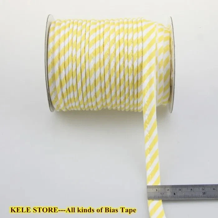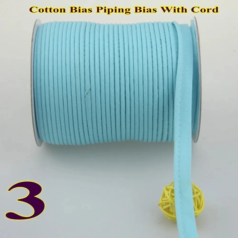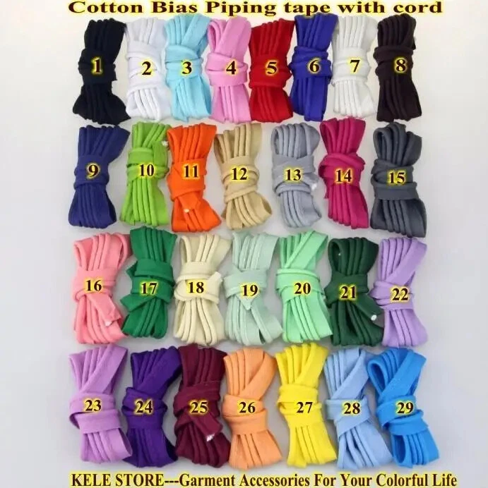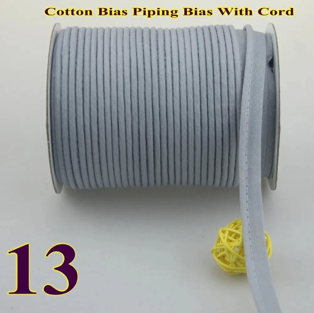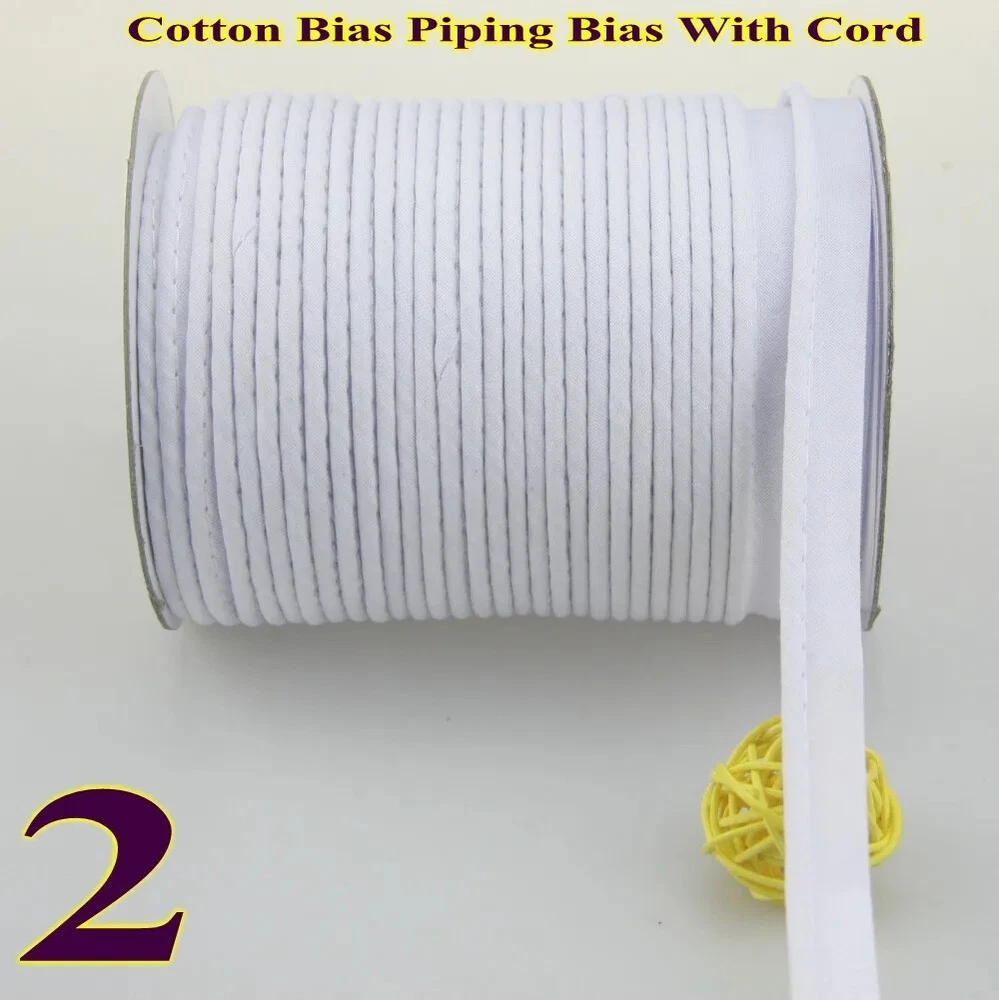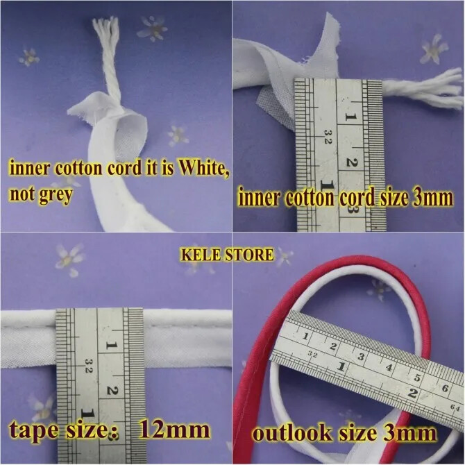 Item:Cotton bias binding Tape with cord ,cotton Bias Piping Size: 12mm (1/2") Dia meter:3mm Use for :making different kind of crafts, including Sheets Sofa Curta, and so on. Notice: 1.Due to the light and screen difference, the item's color may be different from the pictures. 2.Please allow 1-3mm differences due to manual measuremen