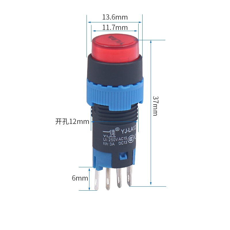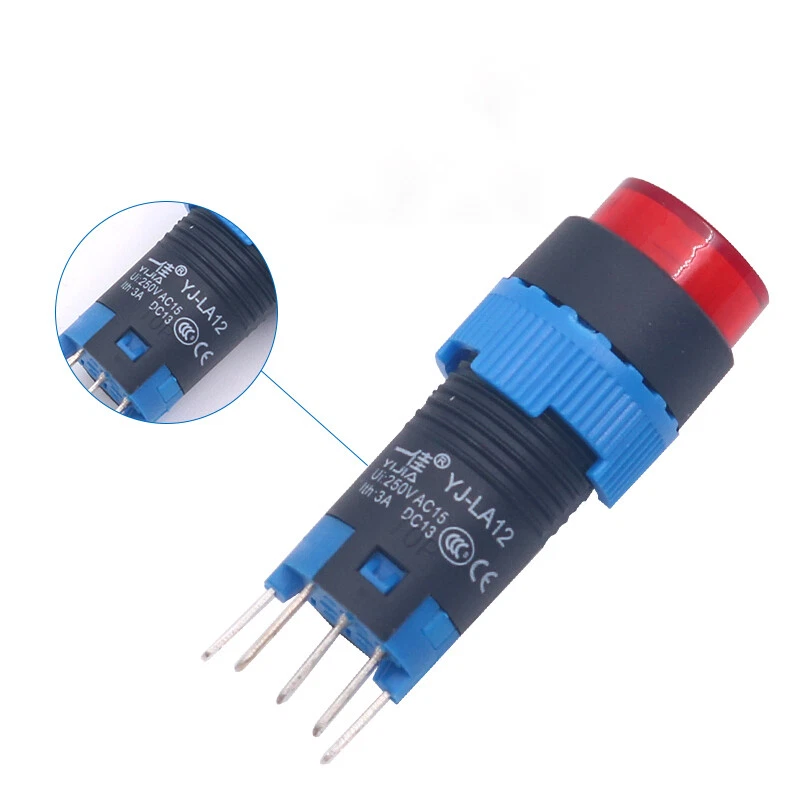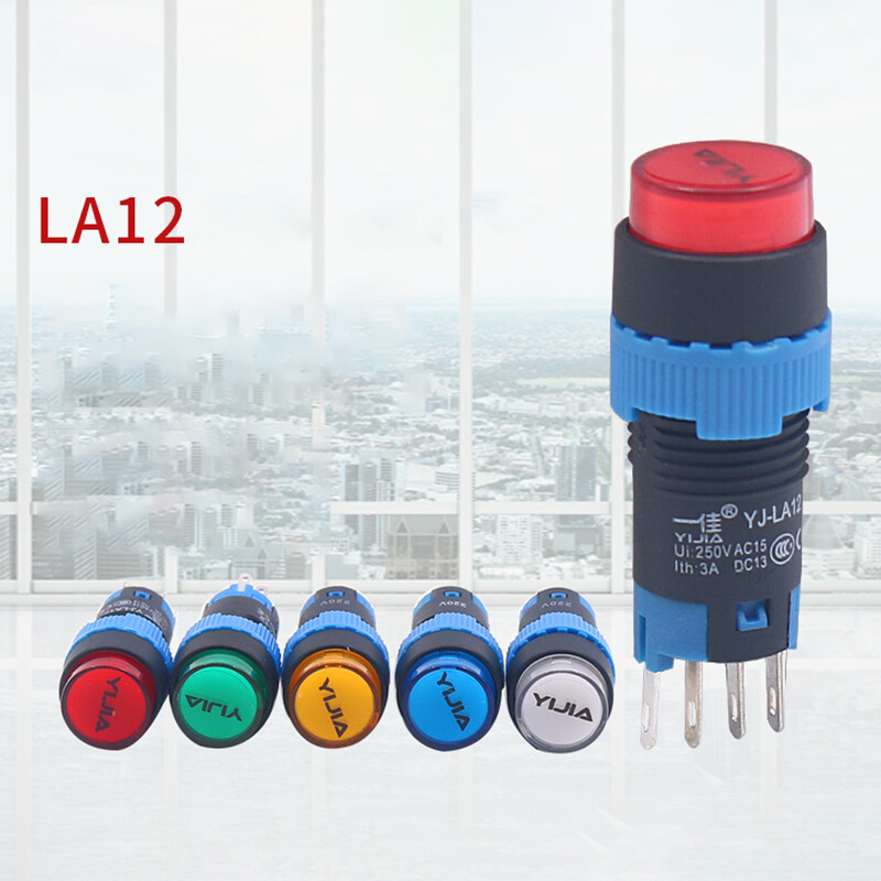 12mm Round Push Button Switch Momentary Latching Switches Illuminated Mulitcolor Product Information: 12mm Round Push Button Switch Momentary Latching Switches Illuminated Suitable for Panel Mounting Hole Size: 12mm with LED ( Illuminated ) Model or without LED ( Non-Illuminated ) Model Color: Red, Yellow, Geen, Blue, White LED Voltage: 9-24V (AC/DC), 220V (AC) Switch Rated insulation voltage(Ui): 250V Switch Conventional thermal current(Ith): 3A Material: Flame retardant Plastic Number of Pins: - with LED ( Illuminated ) Model: 5 Pin - without LED ( Non-Illuminated ) Model: 3 Pin Contact: Silver Alloy Colour: Red / Green / Yellow / Blue / White Features: - IP65 waterproof grade, waterproof and rainproof, safe and durable. - The metal button head has a bright and beautiful surface, and it will not be deformed after 10 million presses. - The silver contacts have better conductivity and are easy to solder. Button function description: Momentary : press the switch, power on the load, release the finger, reset the button, power off the load Latching : press the switch, load power on, and then press the switch, load power off Description of contact switch: Normally open (NO): default state,Normally Open; The contacts close when pressed(Green means NO) Normally close(NC): default state, Normally Closed; Contacts open when pressed(Red means NC) P a ckage Including: According to your choice.