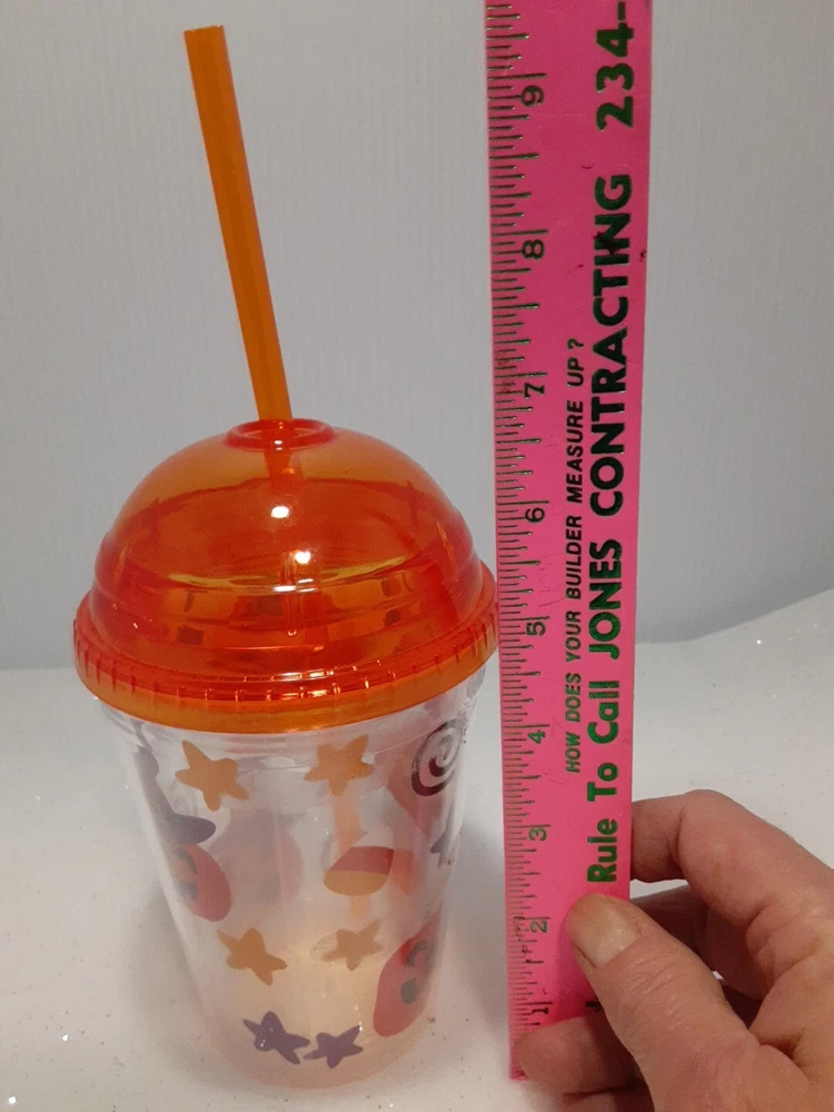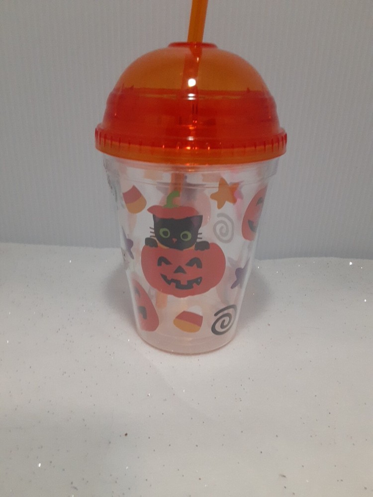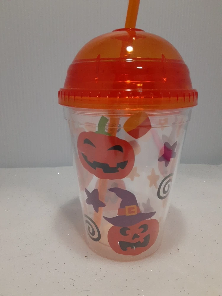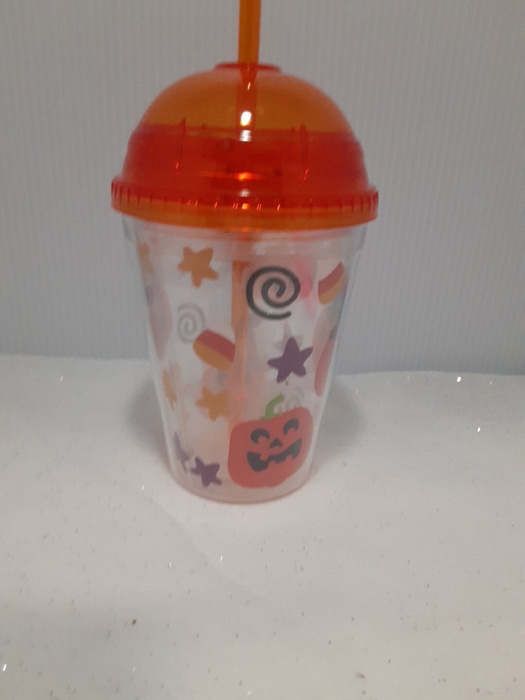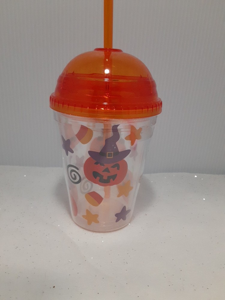 12 Ounce Plastic Halloween Themed Cold Drink Cup With Straw New without tags