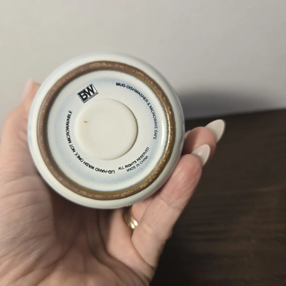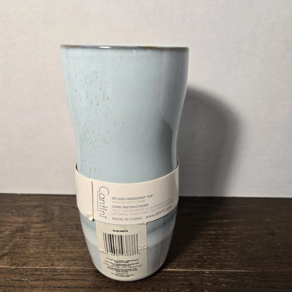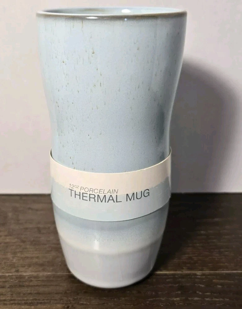 12oz Porcelain Double Wall Thermal Travel Mug Blue Gray Boho Coffee Cup. Condition is New. Shipped with USPS Ground Advantage.