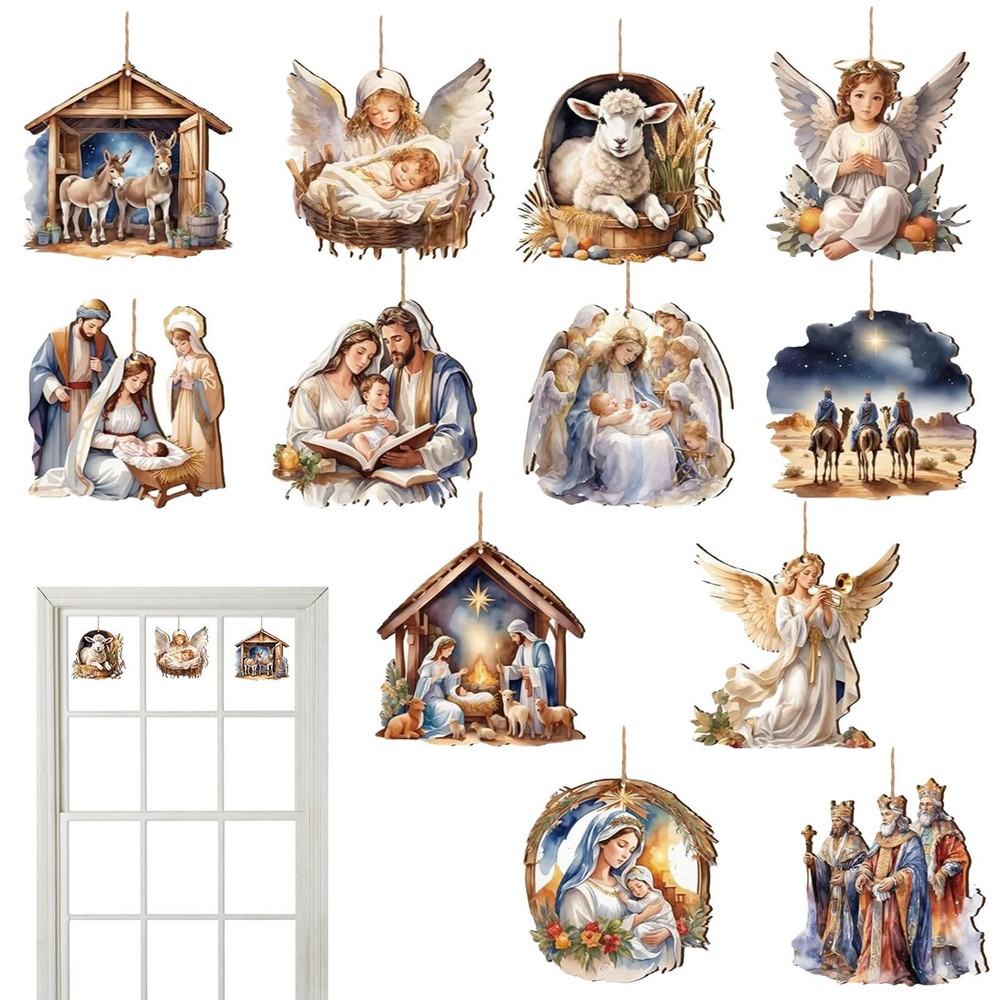 Bullet Points: Distinctive Nativity Ornaments: Featuring classic themes such as the birth of Jesus, stars, angels, etc., our ornaments combine traditional elements with contemporary design concepts. Achieving a unique aesthetic Environmental Protection: Forge lasting family memories with our high-quality wooden nativity ornaments, embodying the spirit of Christmas while ensuring the safety of your home and the environment Exquisite Workmanship: Showcasing exquisite workmanship, each ornament is finely hand-carved and colored, enhancing the texture and fashion of your Christmas decor Emotive Decor: Enhance emotional connections with relatives and friends by delivering a symbol of love and blessings. Our best design is full of warmth, expressing holiday sentiments that touch the heart Thoughtful Present: Each unique ornament, delicately fashioned for your Christmas tree, serves as a daily surprise, embodying a practical and thoughtful present, wrapping care and blessings to give to relatives and friends Crafted with classic themes such as the birth of Jesus, stars, angels, and more, each piece features unique artwork ensuring safety for your family. Perfect as a practical yet thoughtful present for loved people, these ornaments will surely be cherished year after year. Size: As shown in the picture Material: Wood list: nativity ornaments for Christmas tree*12 pieces