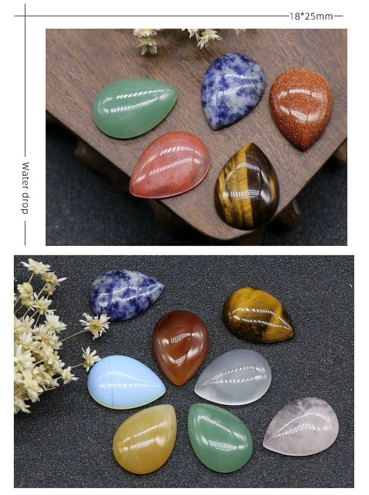 12pcs Natural Stone Mixed Water Drop CAB CABOCHON Beads 18X25mm for Jewelry Making Material: Natural Stone Size: 18X25m m (About 0. 70 *0. 98 in) Shape: Water Drop CAB CABOCHON Beads Color:As shown (random delivery) Material:Natural Stone MOQ:12 PCS 1inch=2.539cm, 1cm=0.3937inch 1cm=10mm Stone Produce Can Gives You Deep Sense of Positive Energy Peace of Mind, Balance, Healing, Meditation, Balancing Emotions Energy forBeginners for Teens Yoga Supplies , Art Collection ,Charms for Making Jewelryand Findings Supplies. Application: 1. Personalized charm Suitable for any occasion wear,Unique Gift! 2. For clothing accessories would be more fashionable. Note: 2. This is natural material with High hardness, after highpolish by human, sometimes will have a little crack, But we will check one byone before we ship make sure all in good condition. 3. If you have a problem with the goods, please contact us first and we will solve it as soon as possible. payment We only accept paypal. Please pay within 2 days after you win all. The goods are well packed, bubble packed and ready to be shipped to your PayPal registered address within 1 day after you have completed and settled your payment. Please make sure your address at PayPal matches your shipping address, and then pay. shipping We ship within 2 days after receiving the payment (except weekends and holidays), and we provide free delivery service to the world! To the United States, by China Post epacket delivery, with tracking number (only about 7-12 days!) ; to other countries, it usually takes about 3-5 weeks by air mail from China Post / Hongkong Post, and some packages may be slightly longer, which takes about 30 working days; to send express mail, DHL or Fedex (about 5-8 days) (please note: sometimes due to customs or weather reasons, the delivery may be delayed a little, I sincerely hope you can understand, please wait patiently for a few days, or Contact us for other solutions, thank you Returns We guarantee 100% satisfaction. If you have any questions, please contact us and we will send you a replacement or refund. feedback If you are not satisfied with this transaction for any reason, please contact us before leaving neutral or negative feedback.