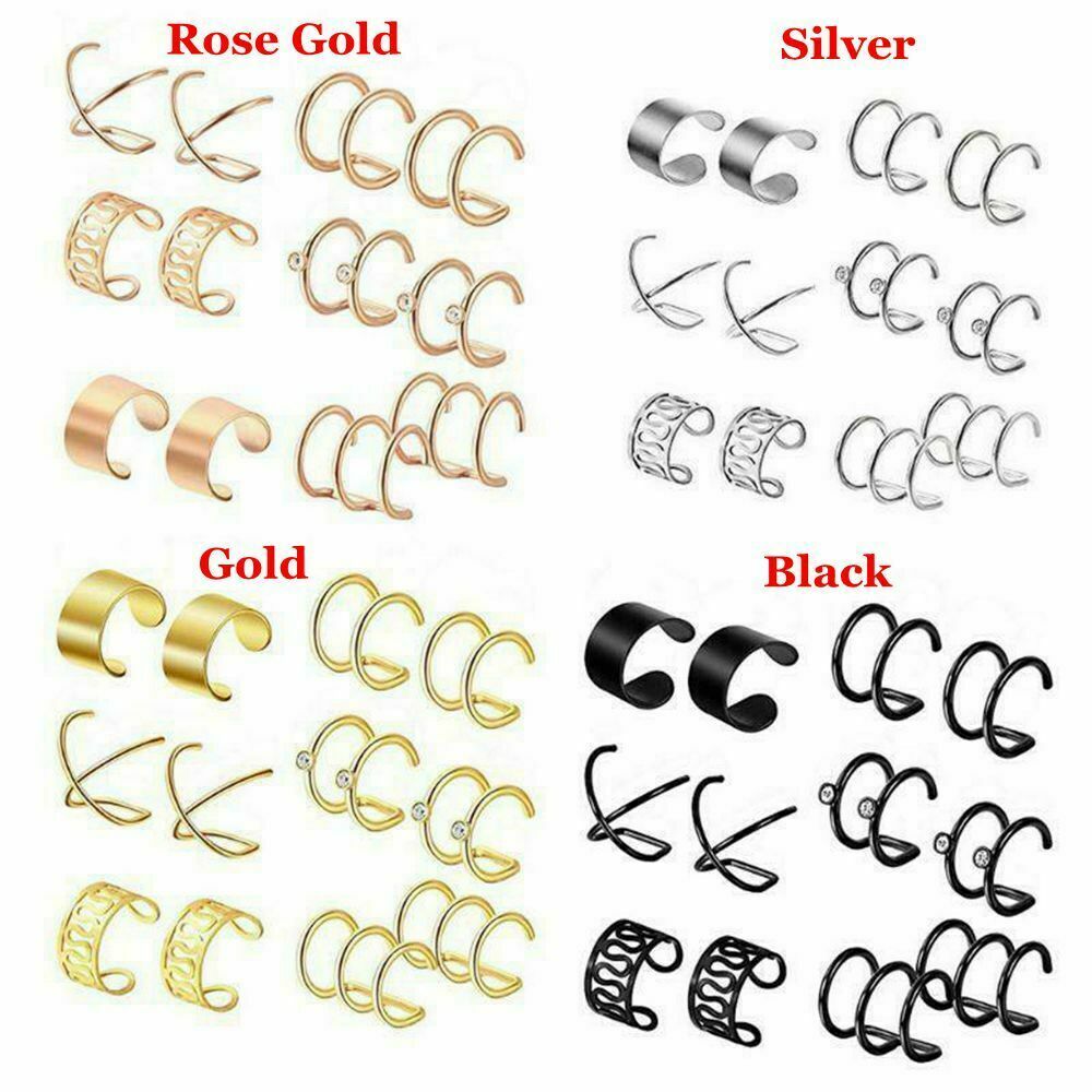 12x Women Men Stainless Steel Ear Clips on Wrap Cuff Earrings Set Non Piercing Specifications: Condition: 100% Brand New and High Quality ! Color: Silver, Black, Gold, Rose gold For: Women, Men Item: Ear cuff Material: Stainless steel A perfect gift for yourself or friend Package Includes: 12pcs (6 Pair) Ear Clips Note: 1. Some pictures look bigger, please refer to the exact item size. 2. Please note that due to lighting effects, monitor's brightness and contrast settings, the color of the products may vary slightly between our photos and the item actually received. 3. We thank you for your understanding.