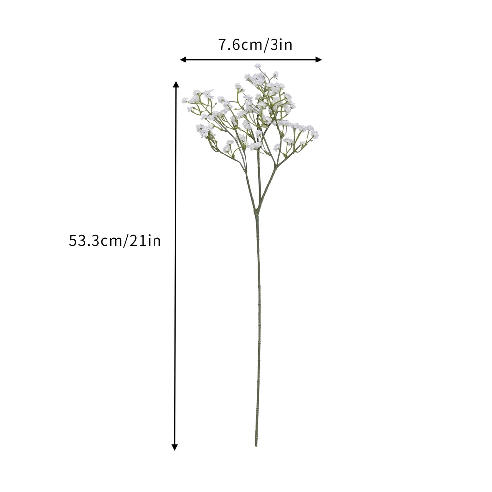 Form: Bunch Type: Baby's Breath Common Name: / Product: Houseplant gtin13: Does not apply Artificial/Fresh: Artificial Brand: N/A UPC: Does not apply Single Plant Size: 53.3x7.6cm/21x3in MPN: Does not apply Occasion: All Occasions Material: Iron, Plastic Color: White Number of Pieces: 12