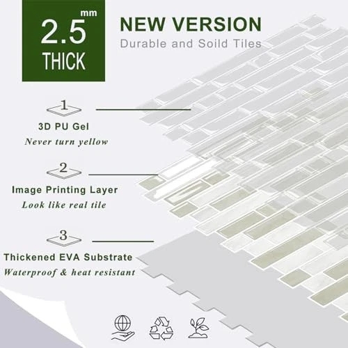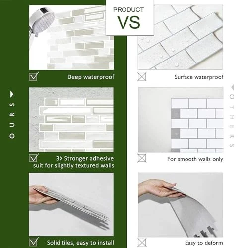 Return Policy Fast Delivery Trusted seller Peel and Stick Backsplash - 10 Sheets of 12”×12” - 3D Self Adhesive Peel and Stick Tile Backsplash for Kitchen & Bathroom Product Description 2-3 Times Thickness: Much thicker than ordinary peel & stick tile, 2mm-2.5mm each, durable and solid tile, unlike soft sticker tiles Stronger Upgrade Adhesive: 3X Stronger backing glue than ordinary vinyl backsplash tile, not only stick firmly to the smooth surface, but also available on lightly textured wall 1.4 Times Coverage Area: 10 sheets thickened self-adhesive tiles, 12" X 12" each, which covers 40% more area than 10"x10" tile Widely Use: Perfectly decorated in kitchen island walls, bathroom backsplash, shower, fireplace, and installed behind the stove Easy Do It Yourself: Just peel, interlock and stick. No need to overlap, no grout and no mess, save your time and money on labor Shipping Returns Payment Shipping Shipping is FREE to all addresses other than APO/PO boxes in the lower 48 states. All our stock ships from US-based warehouses. Shipped via USPS or UPS (depending on location and package weight) Unless stated otherwise, all orders will ship within 24-72 hours of your payment being processed. Check our feedback to see the great reviews of FAST shipping we offer. Returns Seller does not accept returns Payment We currently accept payment via eBay managed payments only. Once payment is cleared, we will dispatch your shipment within 1-3 business days. Please refer to the "Shipping" tab for more information regarding shipping speed to your destination.