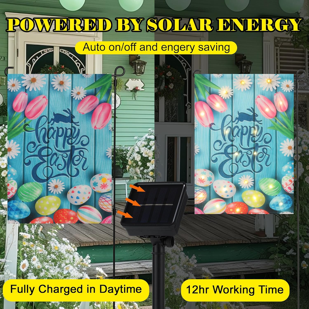12x18 Solar LED Happy Easter Garden Flag with Lighted Easter Eggs