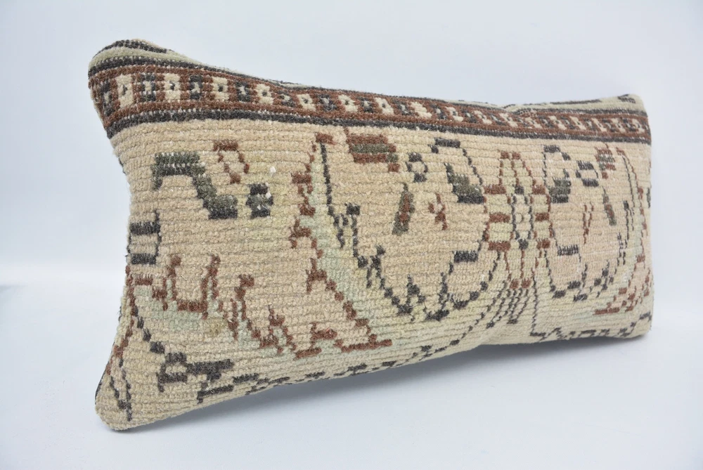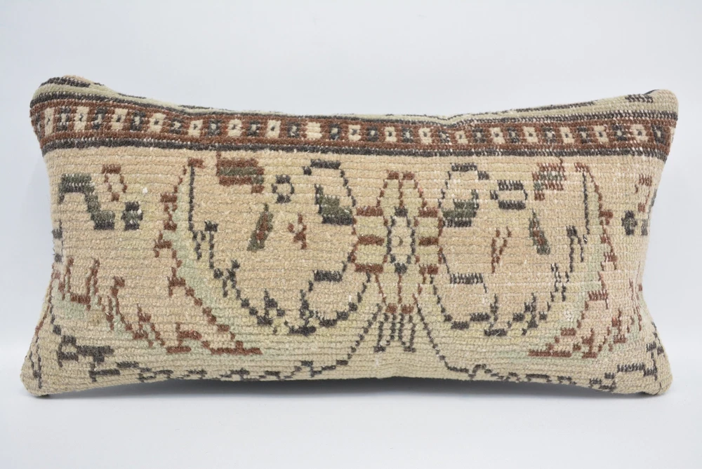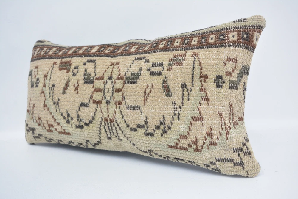12"x24" Beige Kilim Pillow, Throw Pillow Cover, Designer Pillows