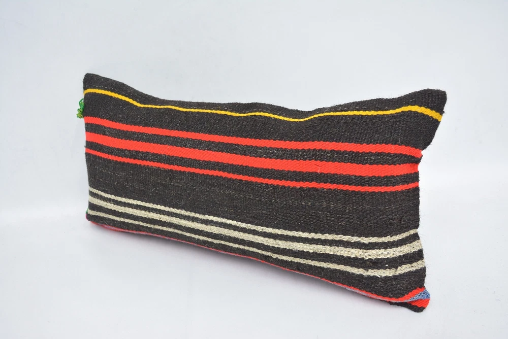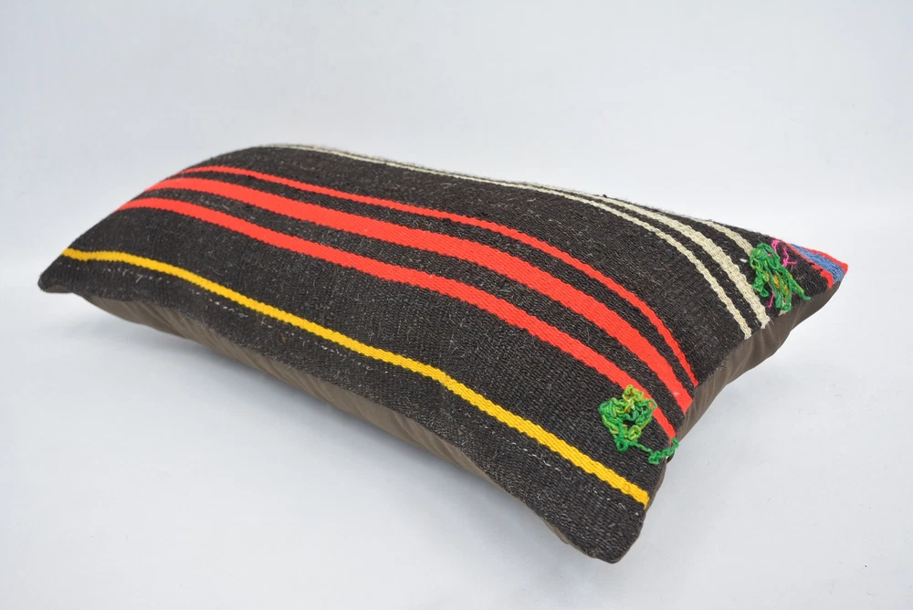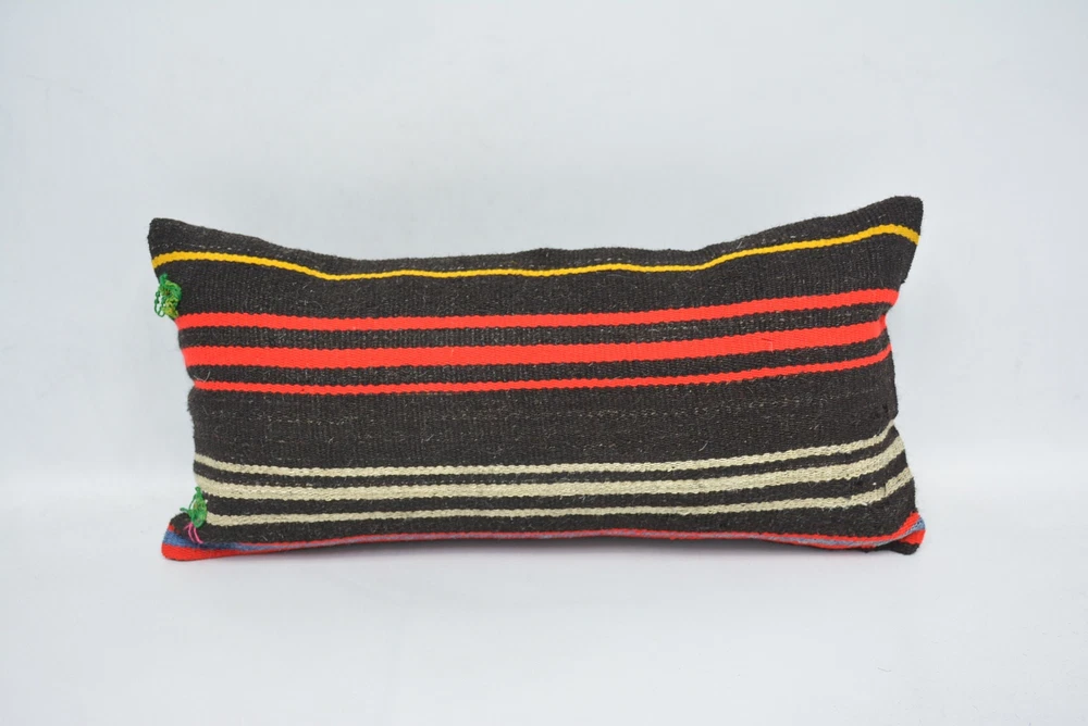 12"x24" Black Pillow Covers, Designer Pillows, Kilim Pillow Cases
