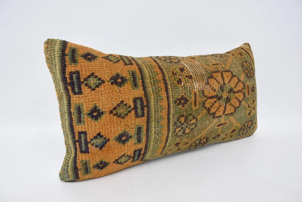 12"x24" Orange Pillow Cover, Turkish Kilim Pillow, Throw Pillow Cover