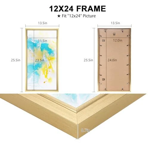 12x24 Picture Frame Poster Frame, Home Decor Natural Gallery 12x24in Gold