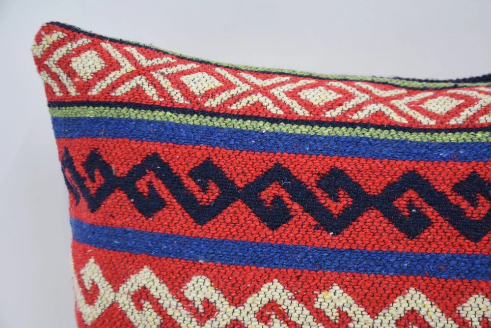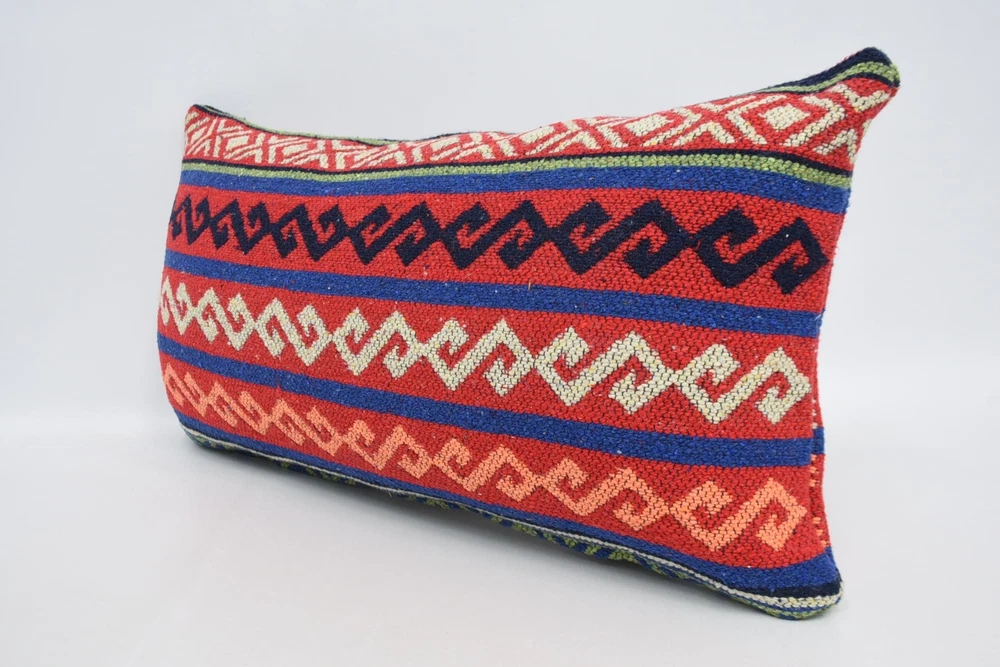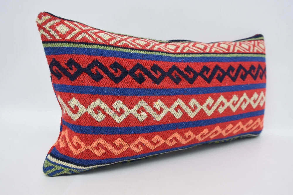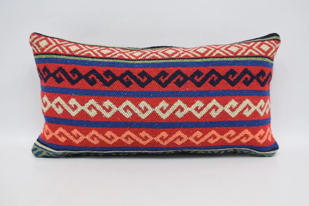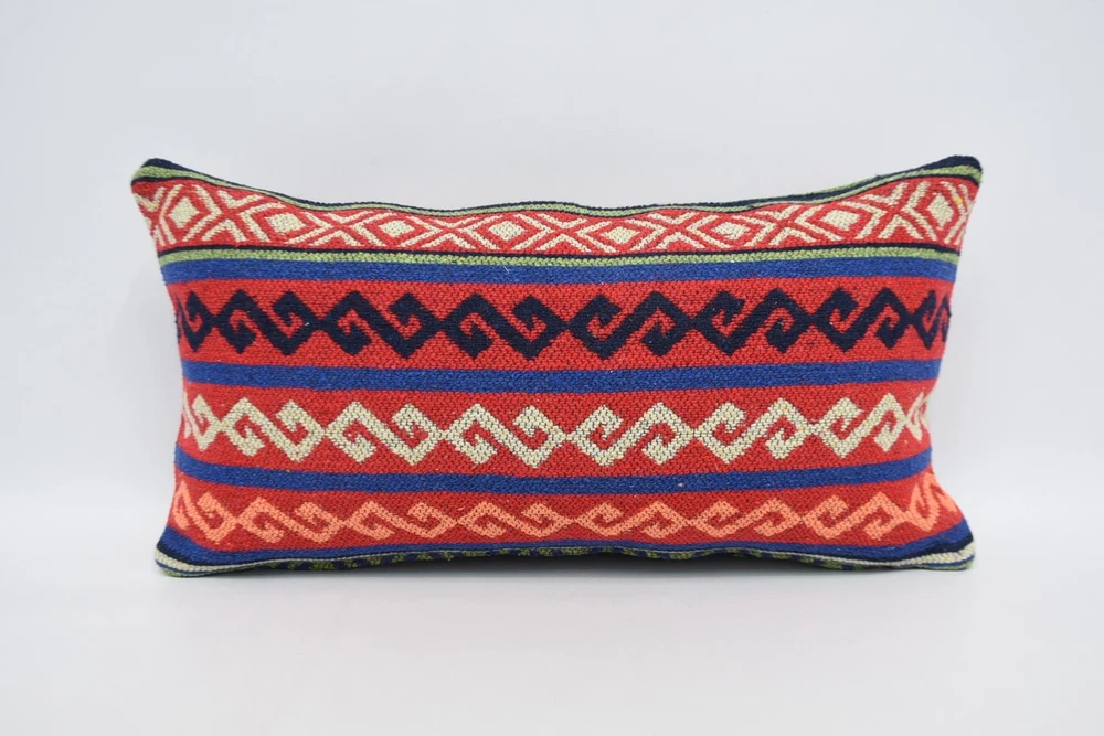 12"x24" Red Pillow Covers, Pillow for Couch, Turkish Kilim Pillow