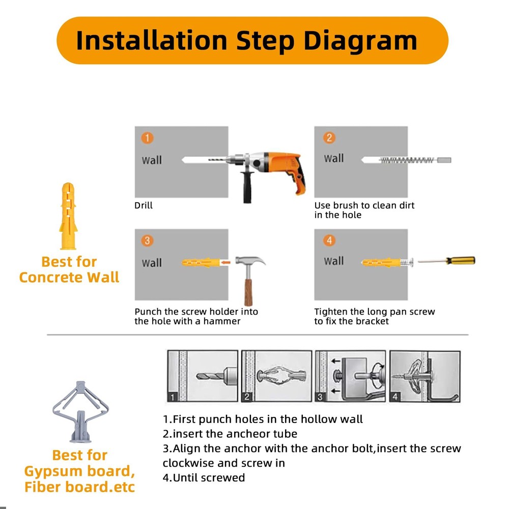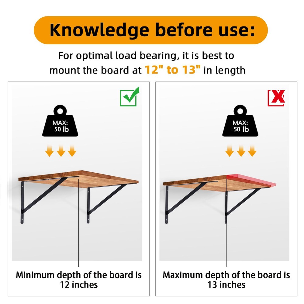 【12 Inches Shelf Brackets】: 6 Pack-12 x 8 inch shelf brackets,including Mounting Hardware.These brackets are designed to support shelves from 12 inches to 14 inches deep. 【Heavy Duty Shelf Brackets】:Our shelf bracktets are fabricated from exceptional steel, characterized by acceptable appulse attrition and no acrylic off. Widely acclimated in assorted apartment of the home, including garage, kitchen, laundry, backyard, etc. 【Rust-proof Coating】 Sturdy steel material with a black -coated finish is durable, chip- and corrosion-resistant. The smooth and rounded surface makes it easy to maintain. 【Easy to install】: The shelf brackets are easy to install, We offer regular screw and butterfly expansion tubes that can be installed on lime or plaster walls 【Quality Services】:We have high efficiency after-sales service. If you have any questions in the process of using, please feel free to us. Our team will help you solve the issues ASAP